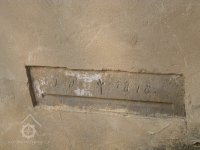Uprostřed průčelní zdi je dlouhá svislá trhlina.