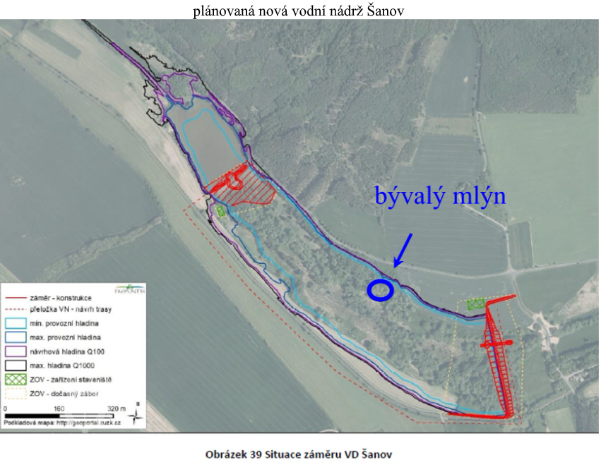 Zaniklý mlýn u obce Šanov na Rakovnicku byl zbořen před rokem 1953. Dnes z něj zůstaly jen kamenné zbytky vratových pilířů.