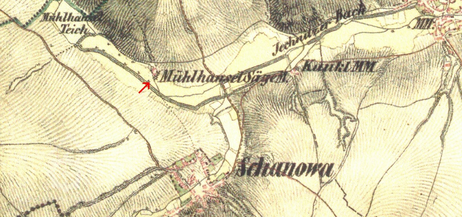 Název „Mühlhanselmühl“ je na mapách I. voj. mapování 1764 – 68 odvozen od tehdejšího mlynáře Jana Titlbacha. Jan byl synem Ondřeje Titlbacha, který provozoval druhý šanovský mlýn – Spálený, jehož nejstarší název je Kouklův mlýn, později No: 60
