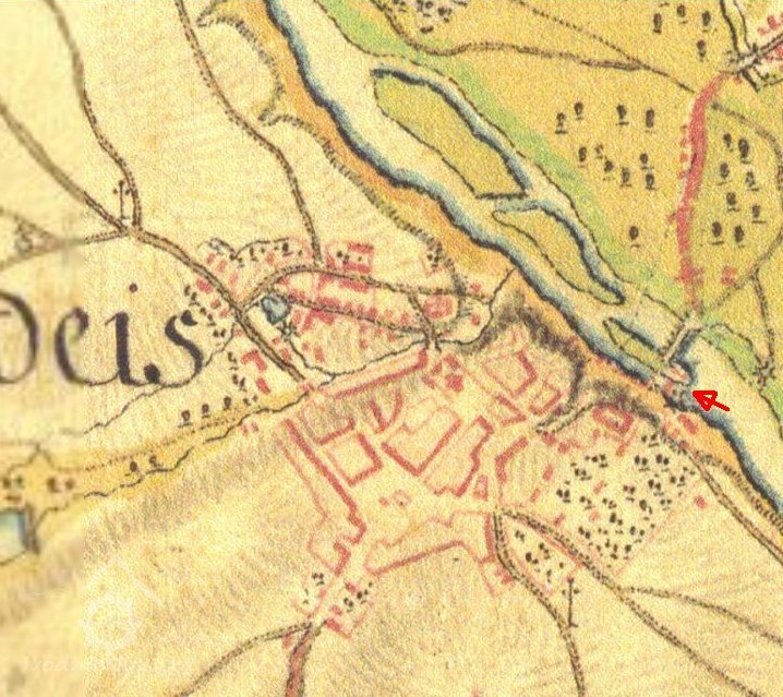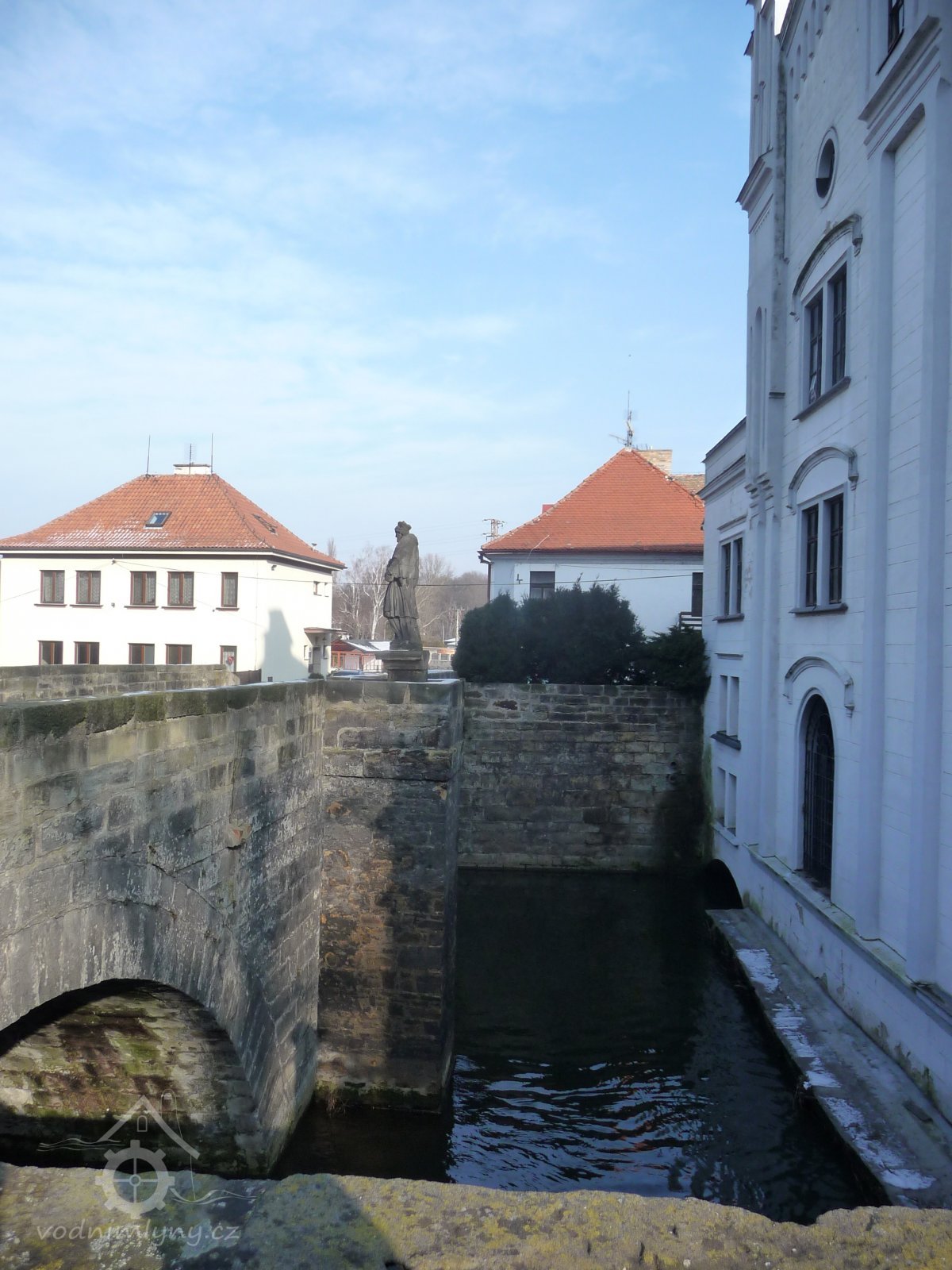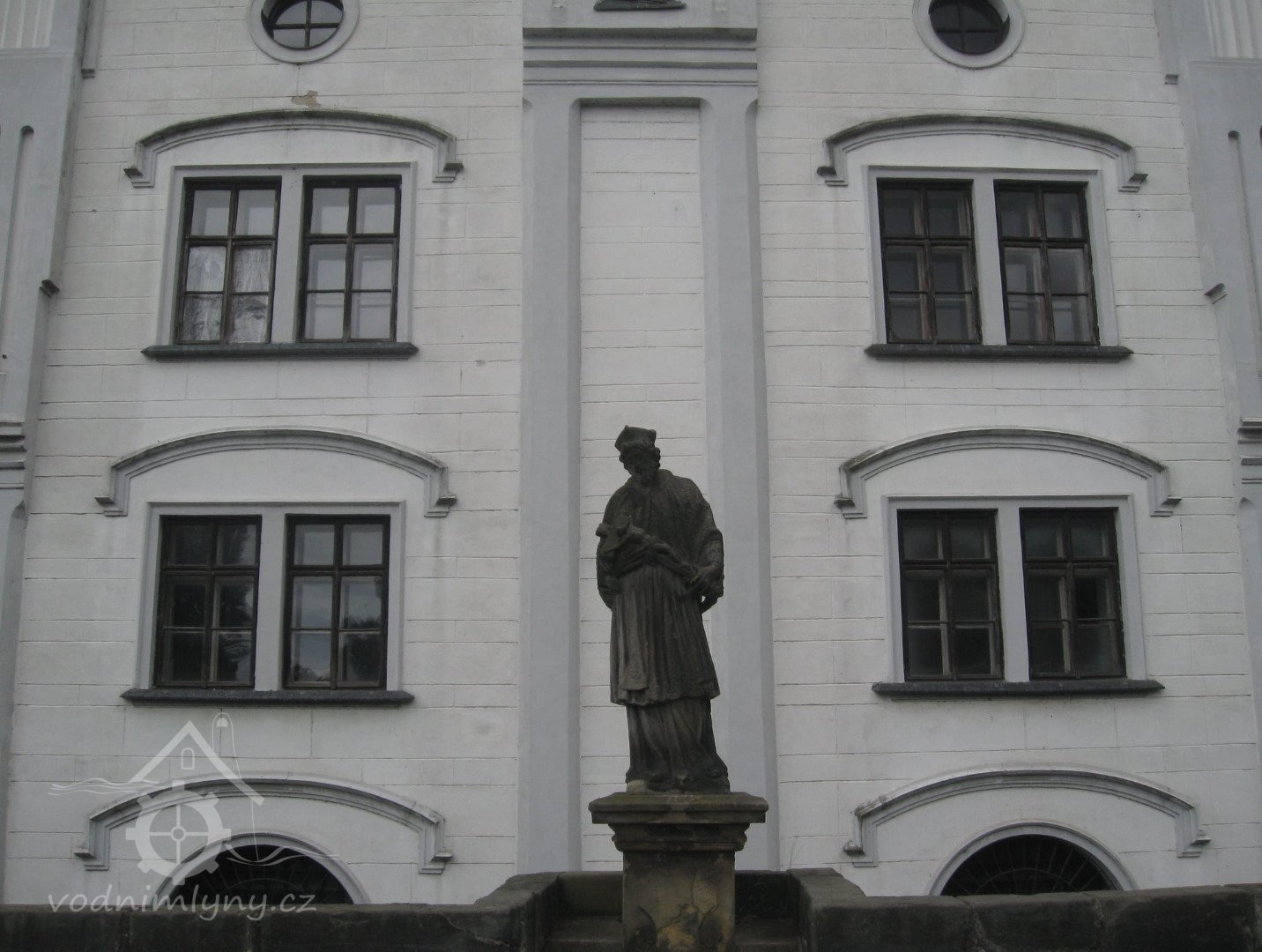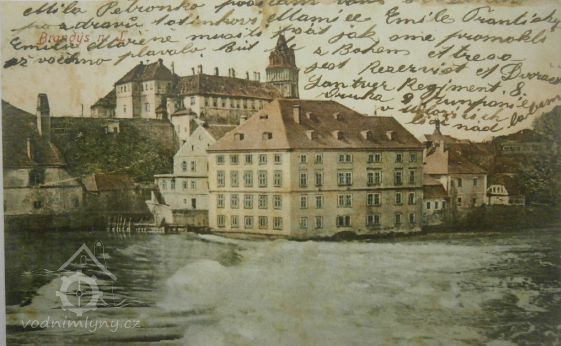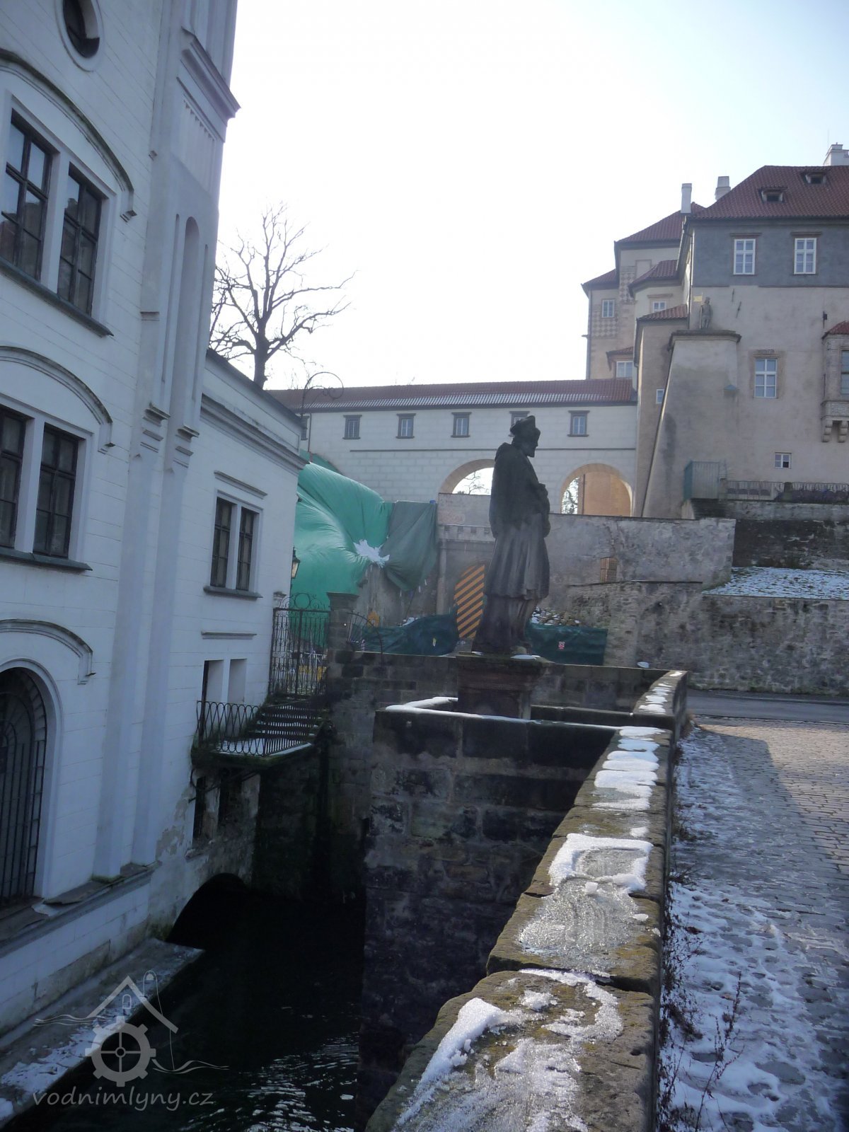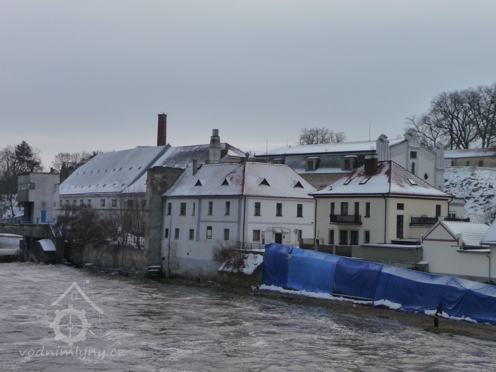 Původně renesanční mlýn s 11 vodními koly, byl v době Rudolfa II. největším mlýnem v Čechách. Dnešní budova je z 19. století. Před mlýnem je kamenný most z r. 1603, jeden z nejstarších kamenných mostů v Čechách, se sochou sv. Jana Nepomuckého. Historická budova u řeky byla zcela zničena požárem v roce 1971 a následně stržena.