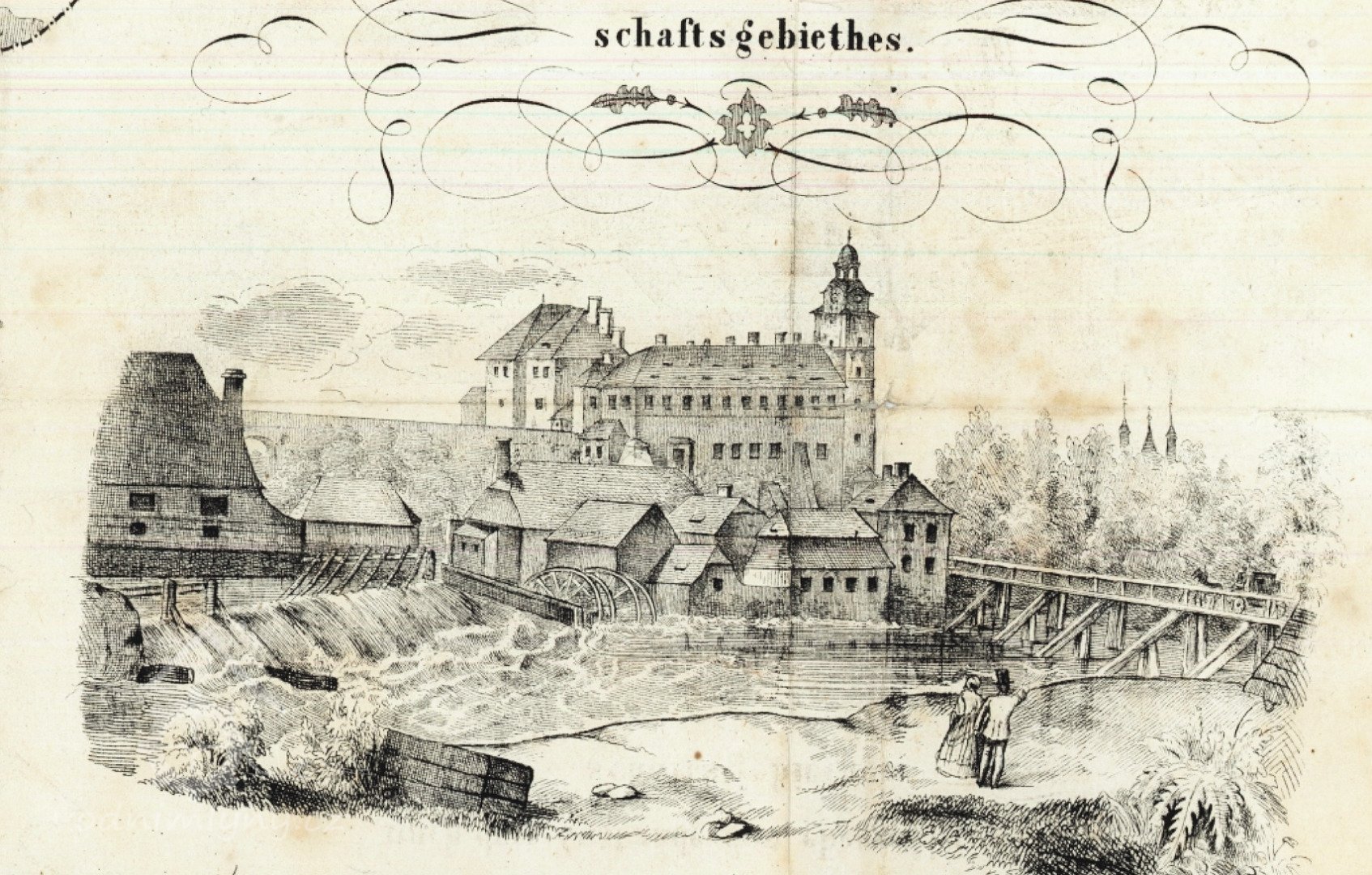 1603 stavba dokončena, mlýn byl největší v království Českém, měl 10 kol, k nimž přibylo dalších 6