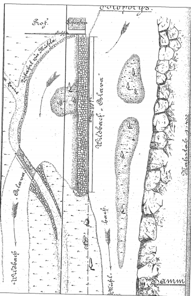 1880 vantroky 5,75 m dlouhé, 1,35 m široké, na konci 2 stavidla 80 x 54 cm