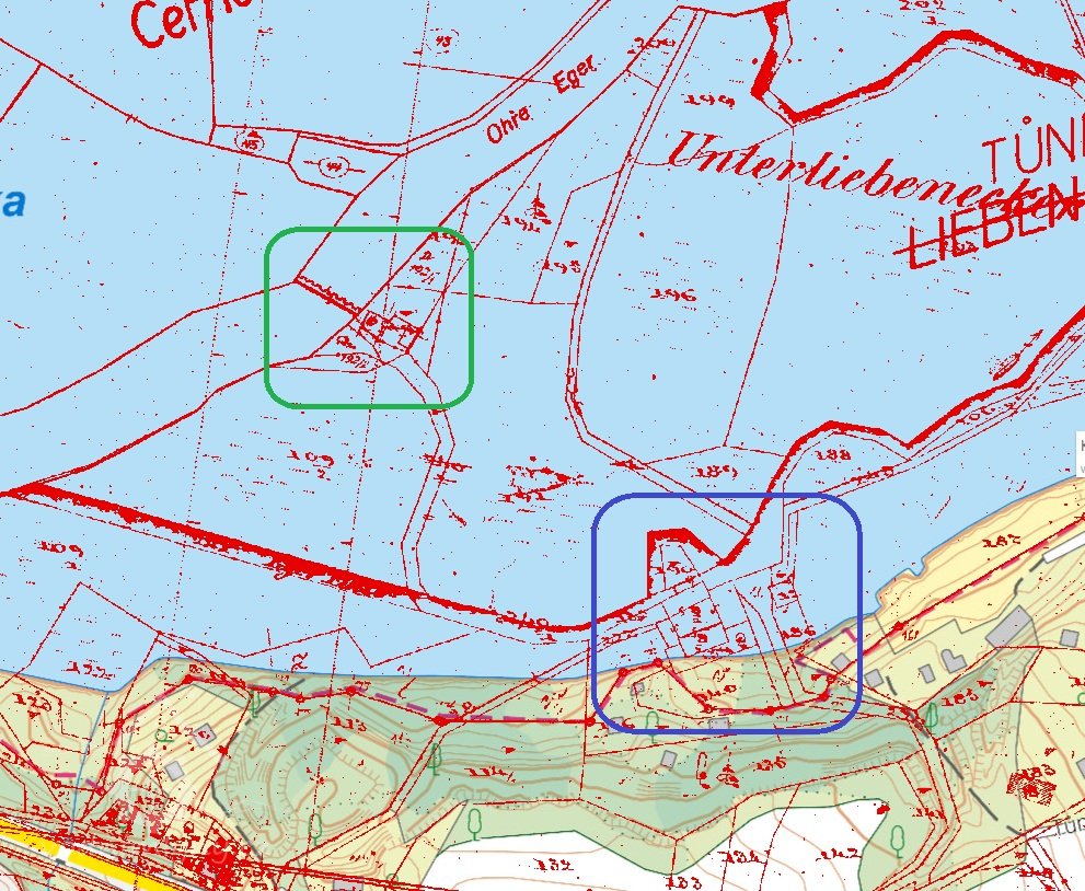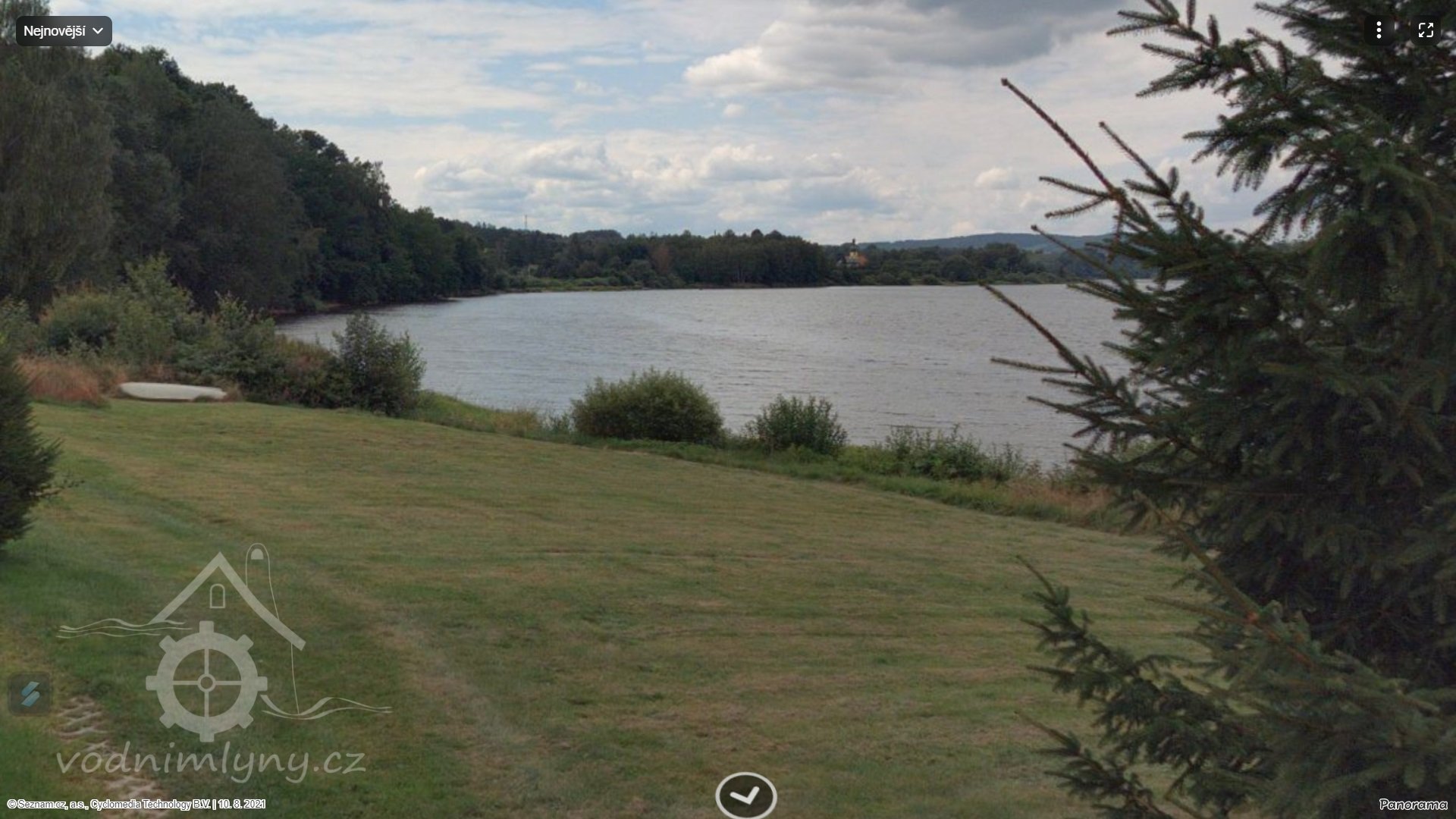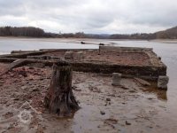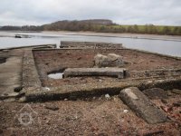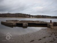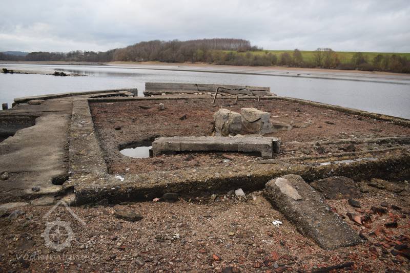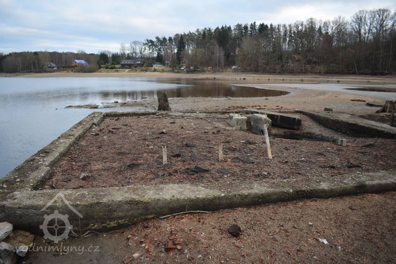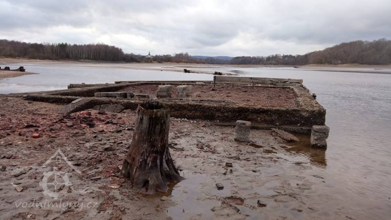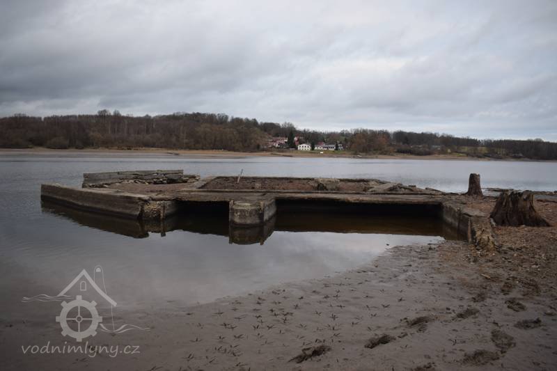 (Pozn. elektrárna se nachází příliš daleko od břehů přehradní nádrže, patrně se jedná o základy mlýna, který ležel téměř u břehu.)