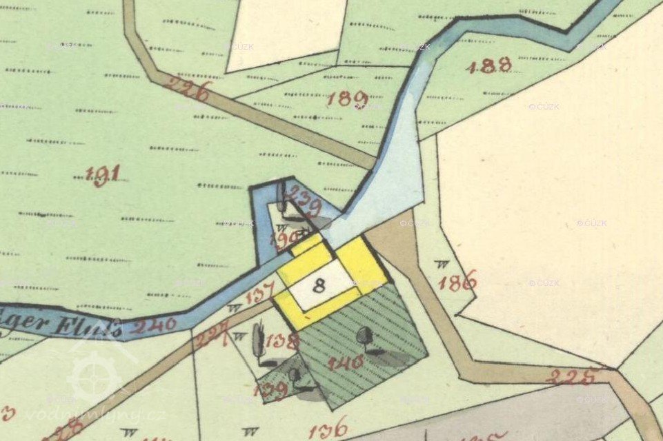 PopisV r. 1930 zde byla 3 kola na spodní vodu, průtok 1,36 m3/s, spád 1 m, výkon 6 k.