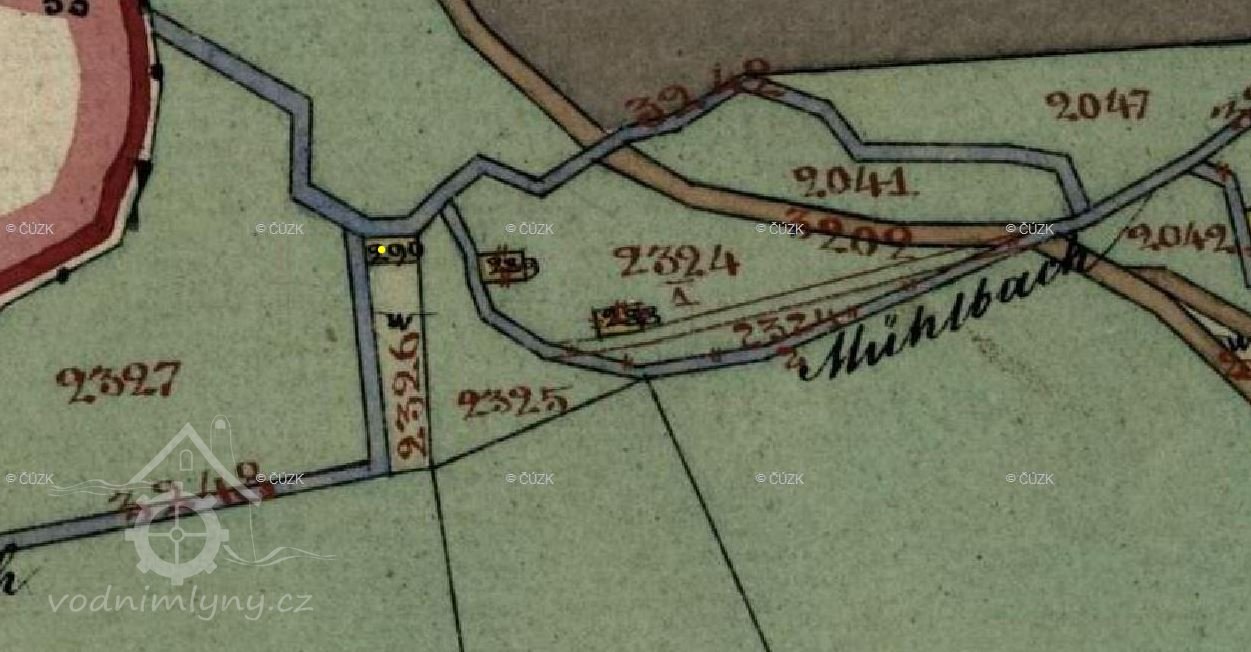 PopisV roce 1930 měl mlýn 1 kolo na vrchní vodu, spád 4,8 m, výkon 6,2 HP.