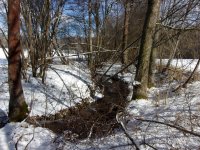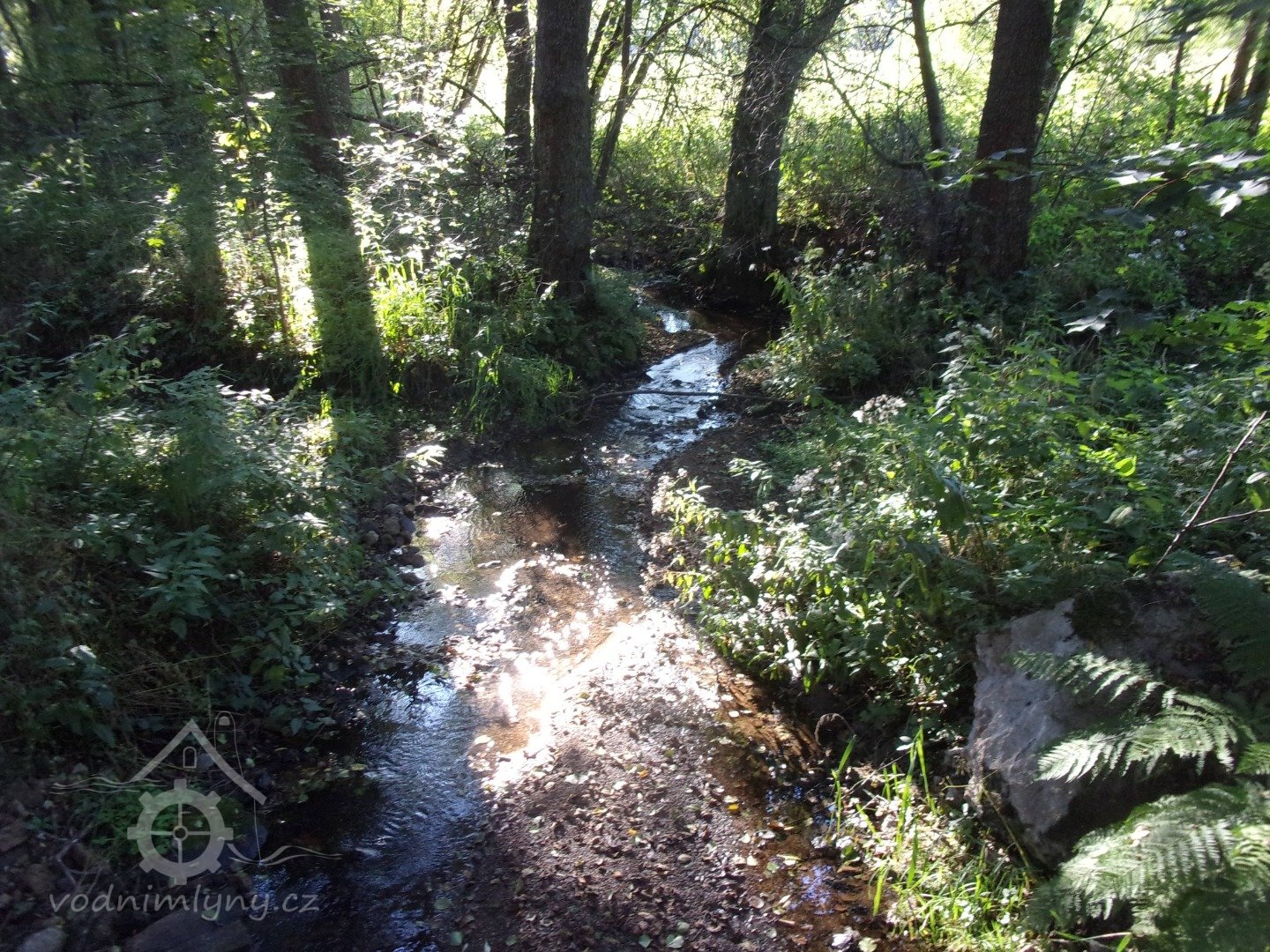 Pod mlýnem lze vysledovat zanesene zbytky náhonu před návratem do koryta potoka.