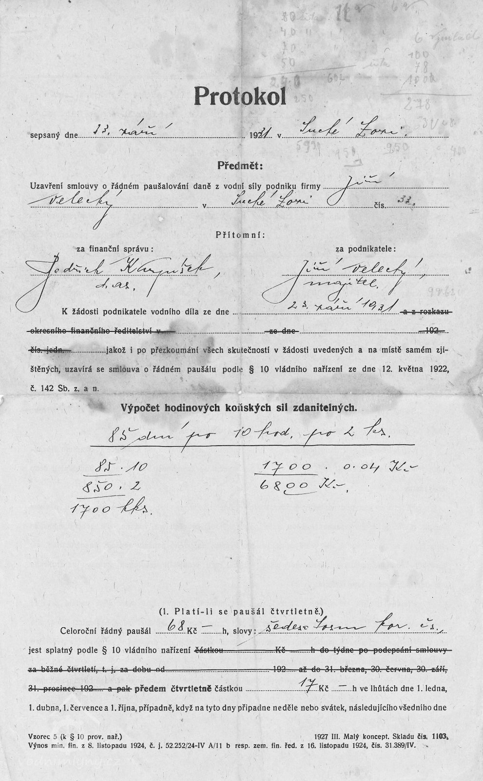 r. 1924 - majiteli mlýna č. 33 Johanna Velecká rozená Adamcová narozena r.1896 vdova po Martinu Veleckém a jejich dcera nezletilá Marie Velecká narozena r. 1919