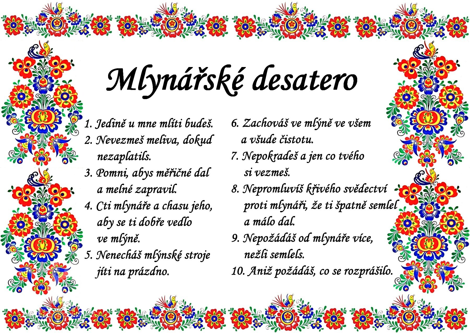 V tomto již zmiňovaném období zde také podle dochovaných záznamů vznikla zcela určitě nejznámější píseň: „Teče voda, teče cez Velecký majír“ která se váže k budově mlýna č. 33 a jeho vodnímu náhonu, který protékal 190 m dlouhým kanálem přes celý Velecký majír (statek) až k samotnému mlýnu. Slovo majír, které se v té době v místním nářečí používalo k označení statku či velkostatku, pochází z německého Meierhof. Podrobnější vysvětlení nářečného výrazu „velecký majír“ najdete zde: https://cs.wiktionary.org/wiki/maj%C3%ADr Tato píseň, jak se s přibývajícím časem i oblibou šířila, postupně zlidověla jak v Čechách, tak i na blízkém Slovensku a zároveň se také později stala velice oblíbenou písní prezidenta T. G. Masaryka, moravského rodáka z nedalekého Hodonína. Často pak byla hrána na počest panu prezidentovi při různých oficiálních státních návštěvách v zahraničí, čímž se stala i světově známou. Píseň „Teče voda, teče cez Velecký majír“ si můžete s laskavým svolením zpěvaček paní Hany Buštíkové a Dany Vlkové, Duo Kamelie, poslechnout zde: https://www.youtube.com/watch?v=eFH1uTS6h38