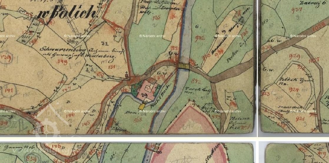 1857: 3 kamenná složení, 2 stoupy a pila