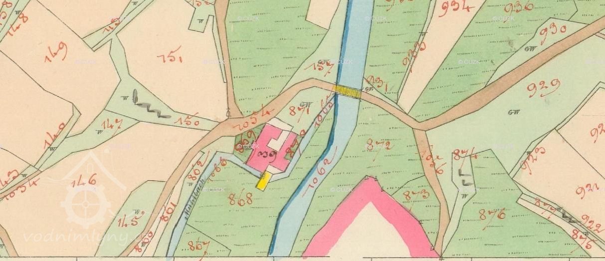 PopisV roce 1930 poháněla mlýn 3 kola na svrchní vodu, průtok 0.099, 0.1 a 0.057 m3/s, spád 3.45, 3.15 a 3.44 m, výkon 7.5 HP