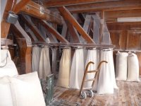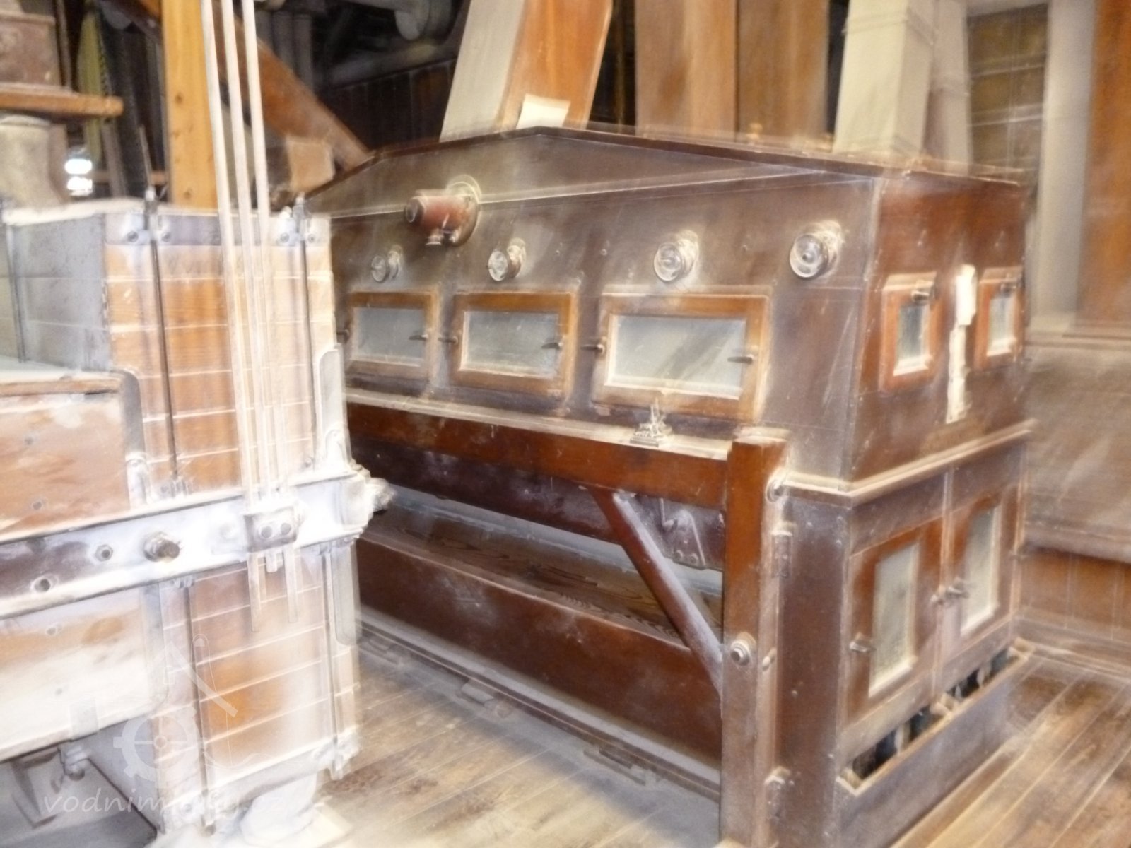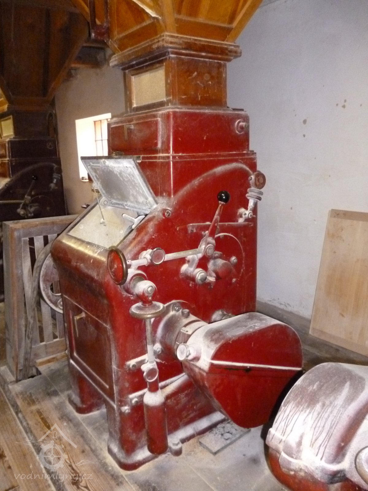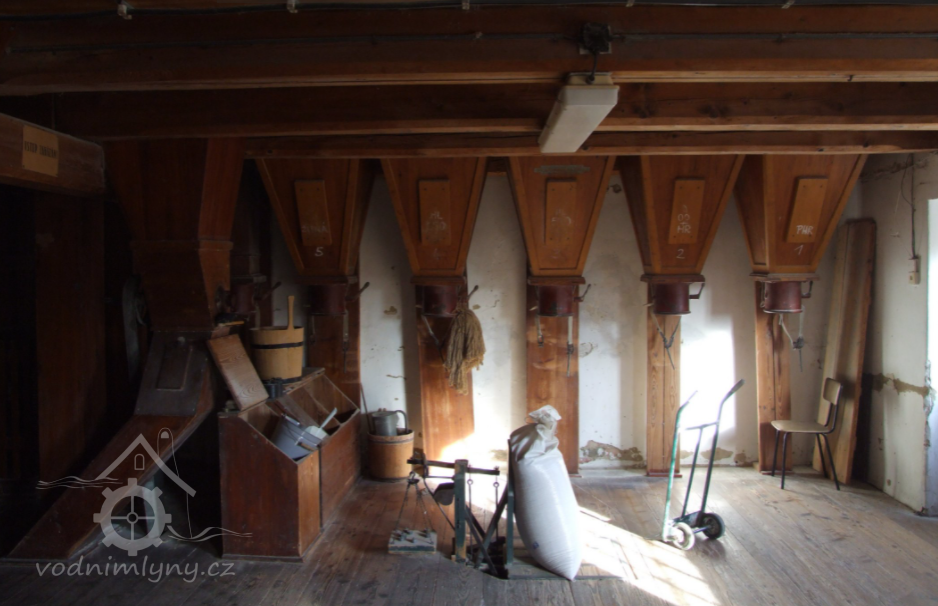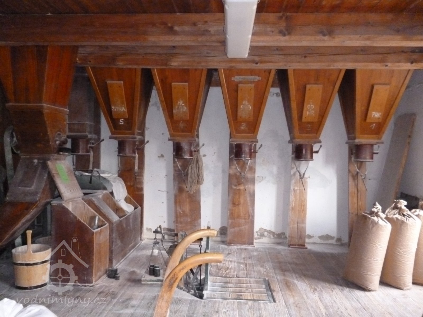 1914: Vnitřní zařízení sestávalo z jednoho páru mlýnských kamenů, jež mlelo obilí na mouku a osévaná byla přes hedvábný pytlík.