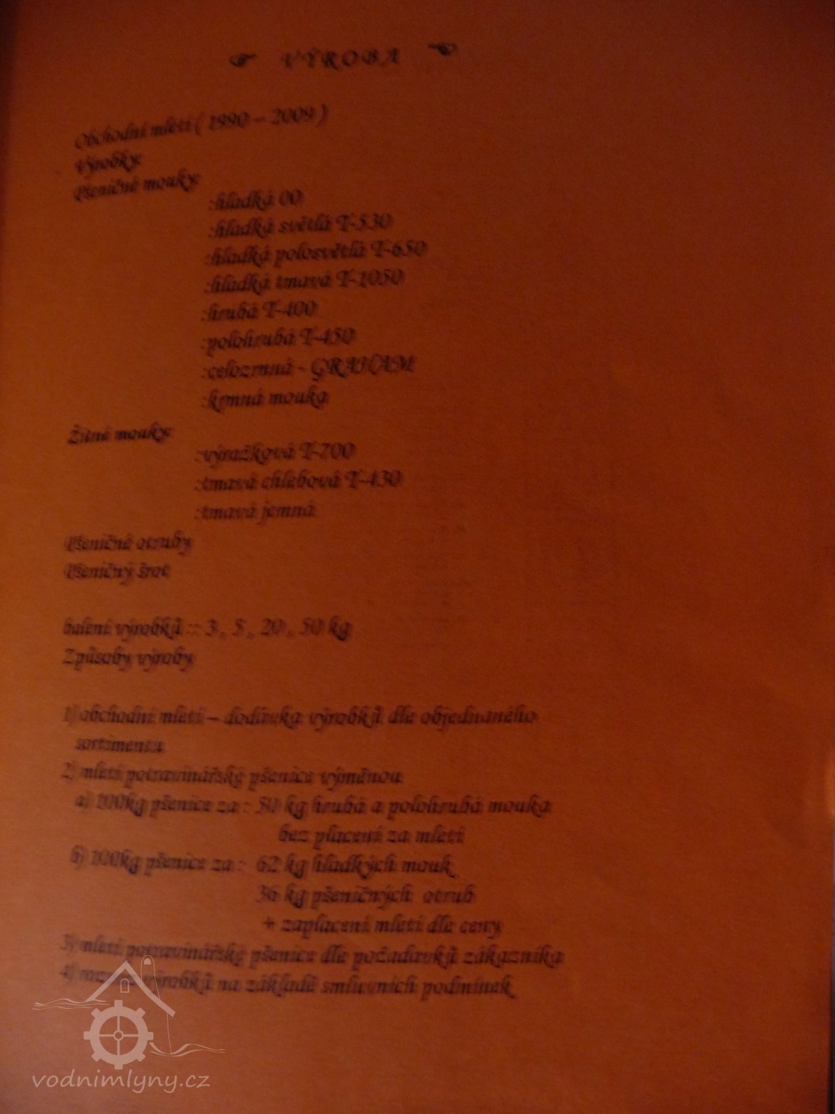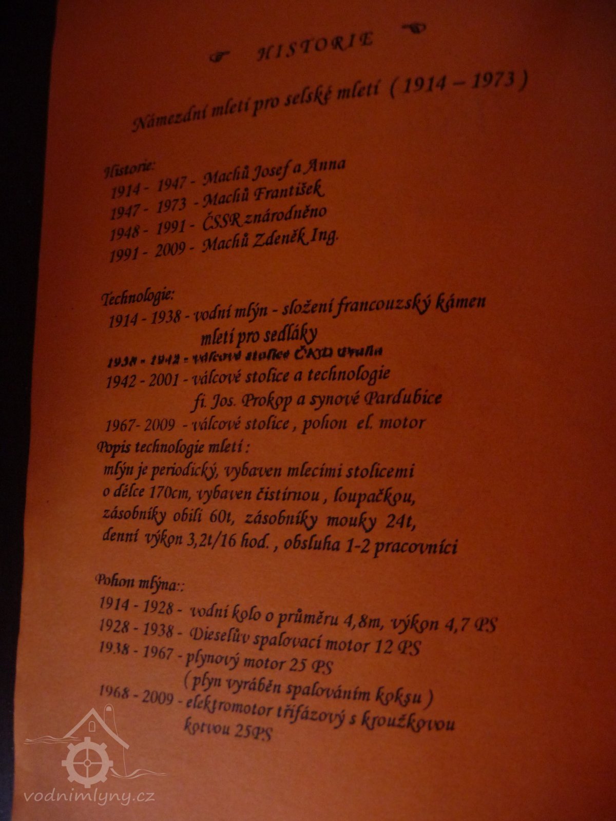 Popis1932: Vodní pohon byl však již nedostačující a byl k pohonu mlýna pořízen stabilní dieselův dvojtaktní motor Gerhard Adam o výkonu 10hp.