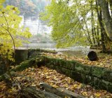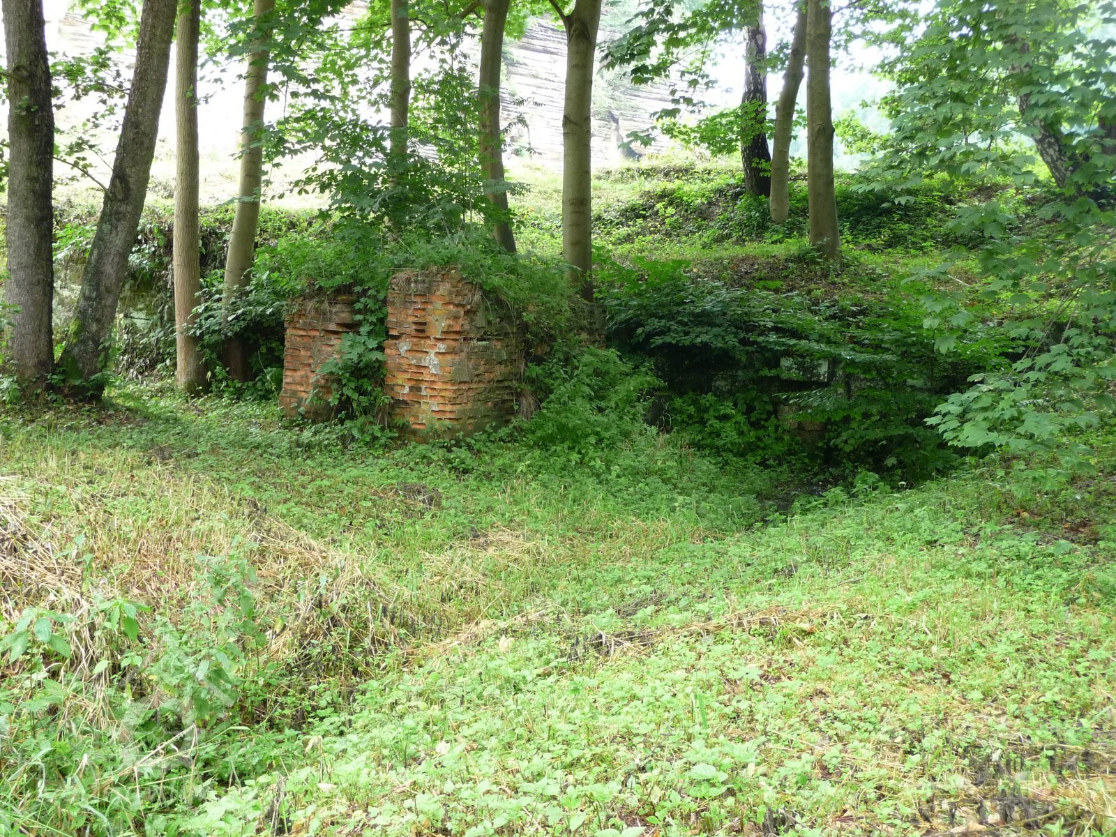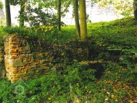 Oborský rybník nad mlýnem, splav od kola zasypán, voda odtéká přepadem