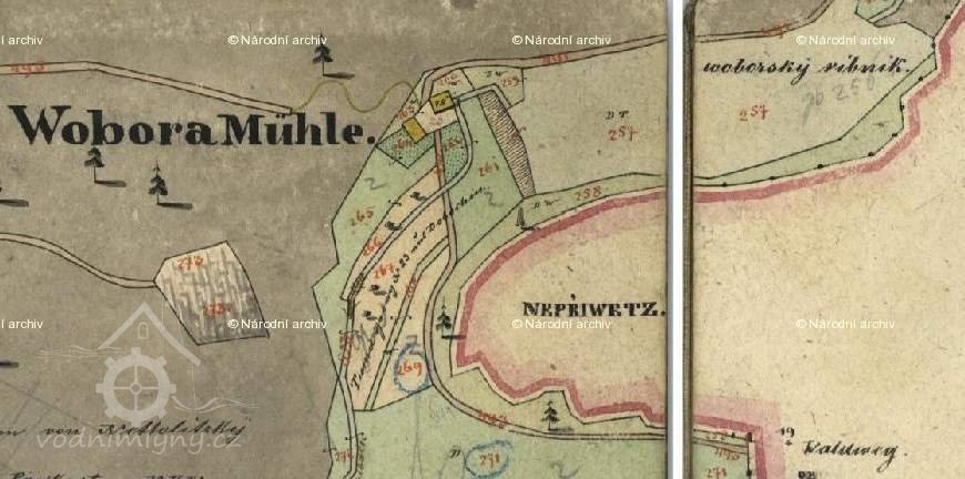 1809 Jan Potěra prodal Václavu Dollanskému za 6300 zl., z mlýna se platí vrchnostenská činže 50 zl. ročně, k mlýnu náleží bezplatné užívání louky pod hrází