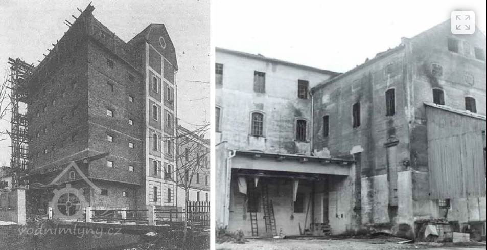 Mlýn o jedné budově byl postaven v r. 1884 jako mlýn budějovických pekařů a krupařů.