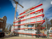 Nyní jsou dvě původní budovy pod lešením a v areálu vyrostla moderní přístavba, kde také budou byty. Bydlet se však bude i v bývalé administrativní části a samozřejmě i tam, kde dříve ve čtyřpatrové hale stály stroje na mletí mouky. Byty budou i v silu, které bývalo vysokou dominantou mlýna.