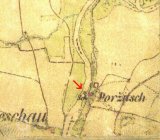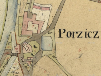 Majetek poříčského panství na zdejším tvrzi/zámečku (dnes památkově chráněné) je podrobně popsán v kupní smlouvě z roku 1594, kdy k majetku patřil dvůr, pivovar se sladovnou, mlýn, cihelna, ovčinec a rozsáhlé kamenolomy. (edit PK)