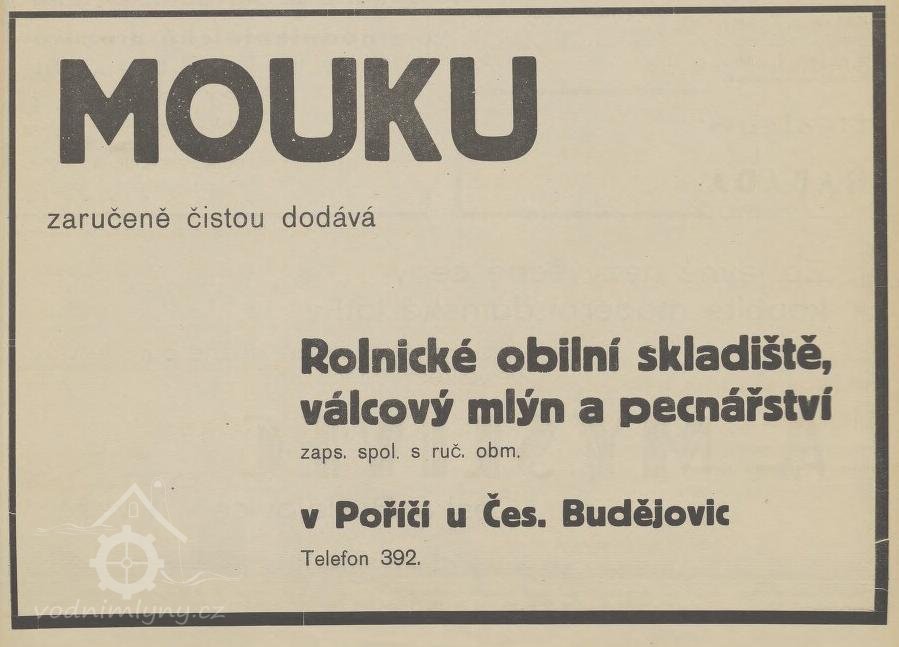 V roce 1930 bylo majitelem mlýna Rolnické obilní skladiště. Mouka vyráběná ve mlýně byla výhradně z českého obilí a měla výbornou kvalitu. Mlýn byl zmodernizován v roce 1936.