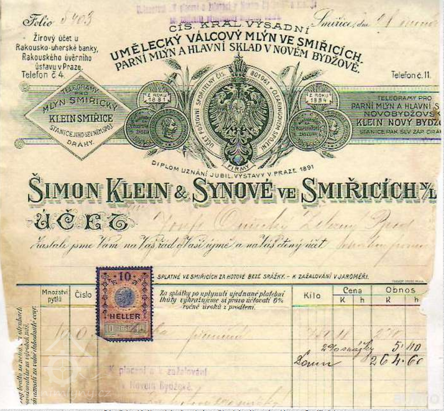Roku 1878 koupil mlýn Šimon Klein, který svůj podnik zmodernizoval a přivedl k nebývalé prosperitě. Dalších několik údajů vám bude zcela určitě připomínat současnou dobu. Roku 1903 byla část akcií Kleinovy rodiny prodána pražské Kreditbance a utvořena akciová společnost.