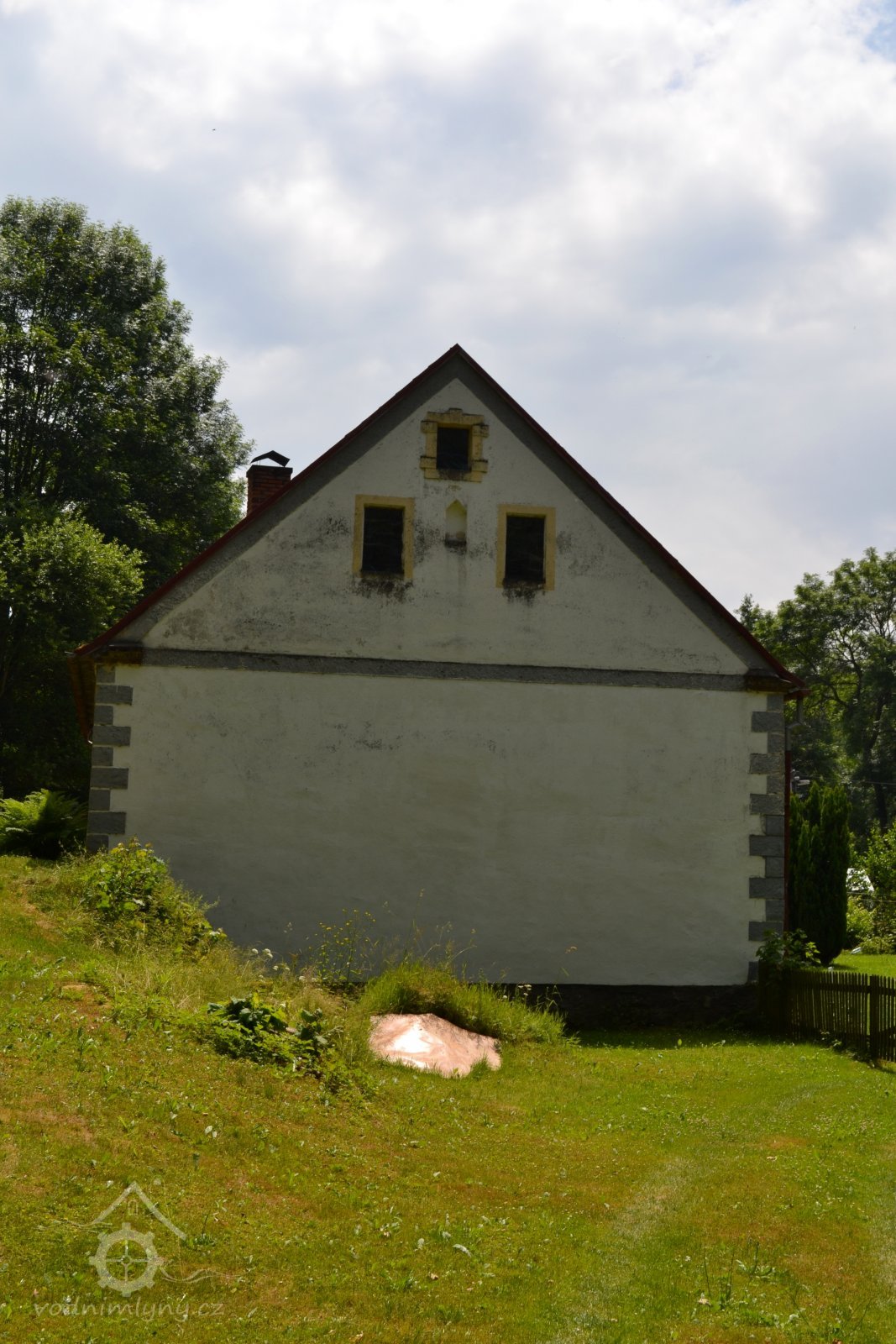 Směrem do svahu je mlýn přízemní, z opačné strany patrový