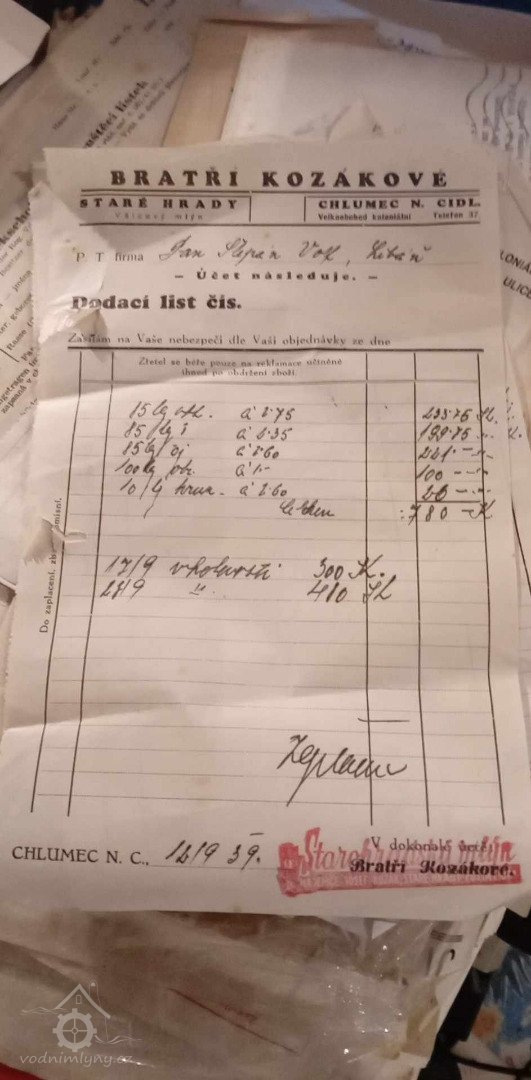V roce 1930 byli majiteli mlýna Jan Nekolný a spol. V roce 1930 se Libáňský protok nazýval Mrlina.