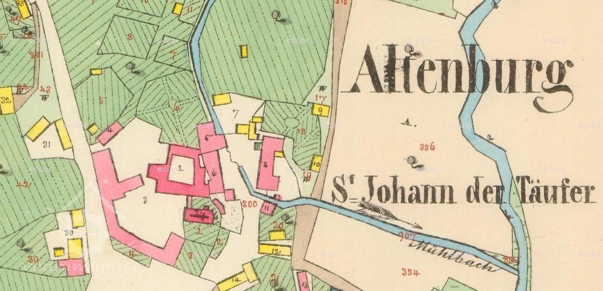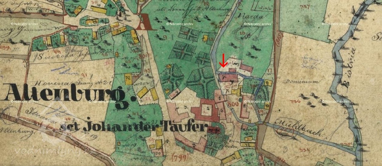 Mlýn vznikl až po roce 1842, není vyobrazen na Císařském otisku, pouze vkreslen do Indikační skici. Do té doby sloužil jako mlýn dům na Císařském otisku označen č. 5. Chtělo by to ještě zdokumentovat čp. 3, k. č. 5. (RŠ)