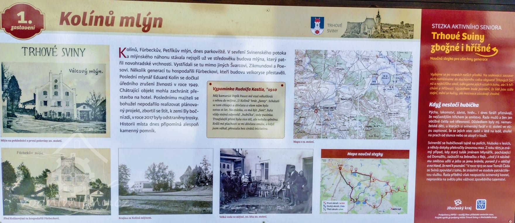 = na přelomu let 1921/1922 Fürbeck předává mlýn Kolínům (rod původně od Sedlčan, srv. Daniel Kovář, Svinenské cesty časem, Trhové Sviny 2019, s. 98)