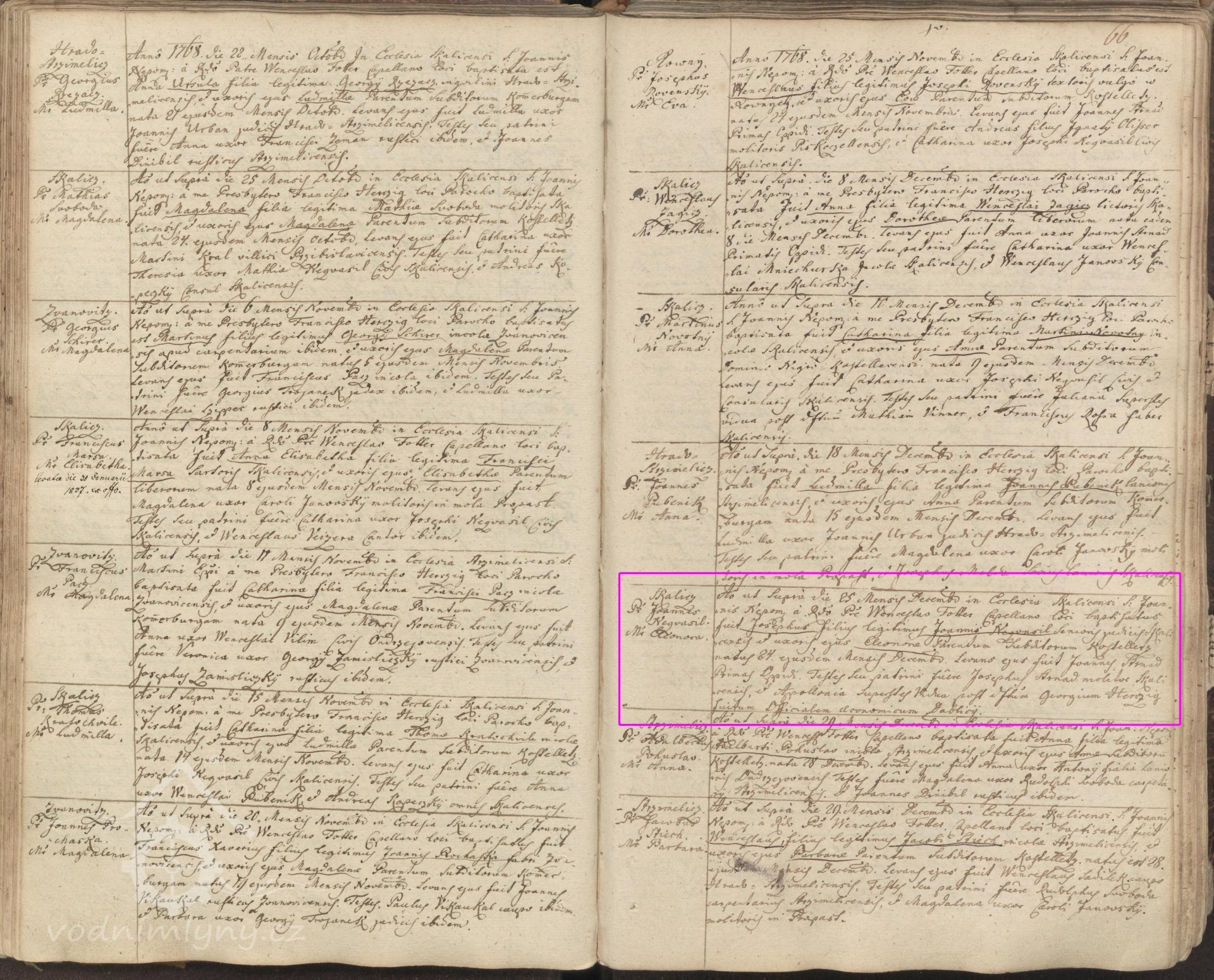 Josef Strnad mlynář skalický je kmotrem Josefa Nekvasila, pokřtěného 25.12.1768 ve Skalici.