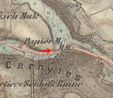 Zřícenina mlýna který zřejmě existoval pouze několik desetiletí a zanikl již před rokem 1930. Mlýn je zachycen pouze na III. vojenském mapování.