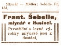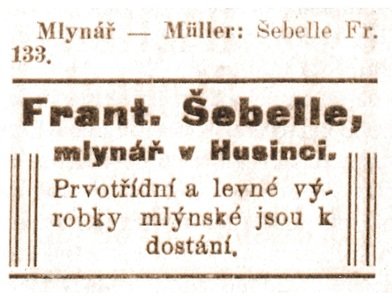 1864 mlýn převzal syn František Šebelle (1829-červen 1877), byl rovněž 2x ženatý, poprvé 1852 s Františkou, dc. Václava Ježka z Husince, 1858 s Marií (1841-1905), dc. Mikuláše Lederera, kupce v Husinci