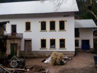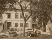 Před přestavbou byl na budově nápis "Mlýn a pekárna Josefa Patřičnýho" Přestavěná budova se velmi podobá původní. (Jakoube)