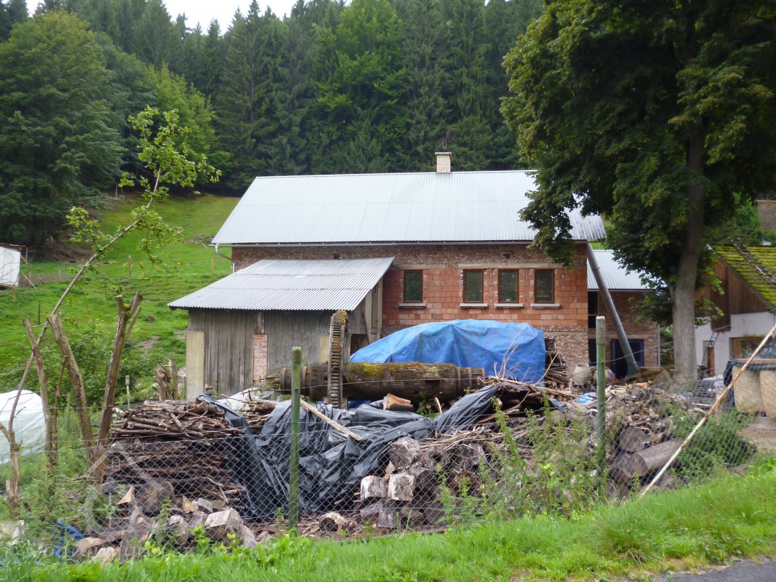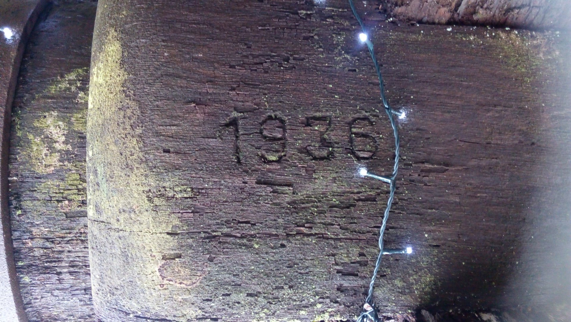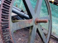 Na dvoře leží paleční kolo se zbytkem hřídele - červenec 2014.