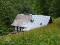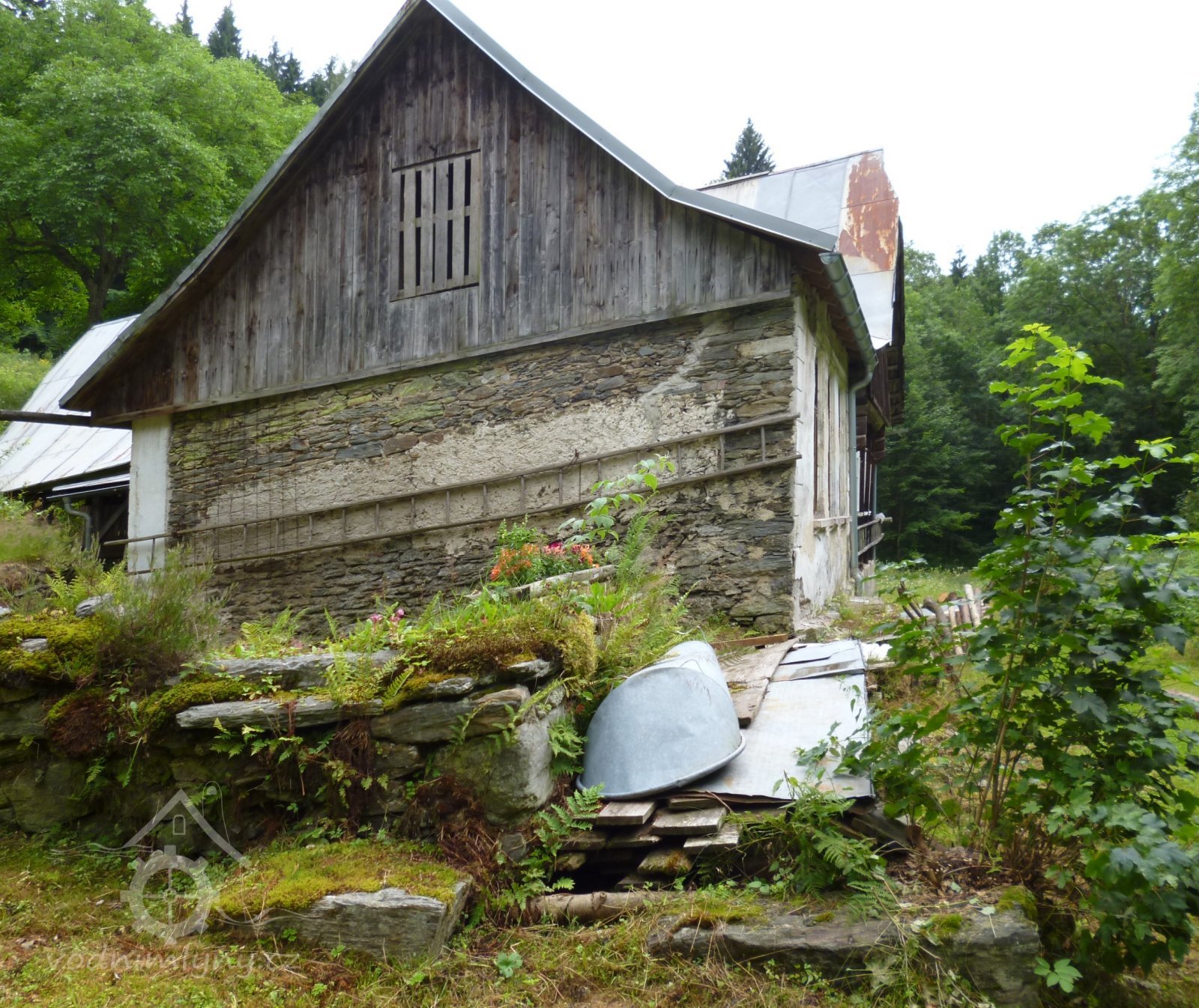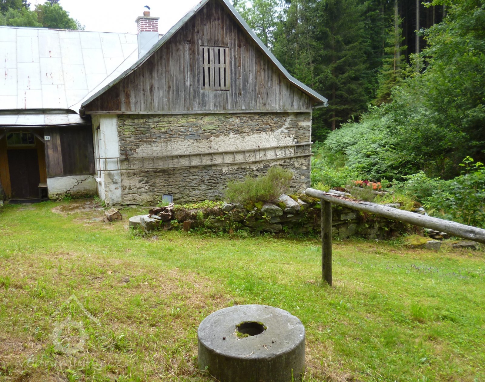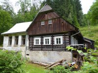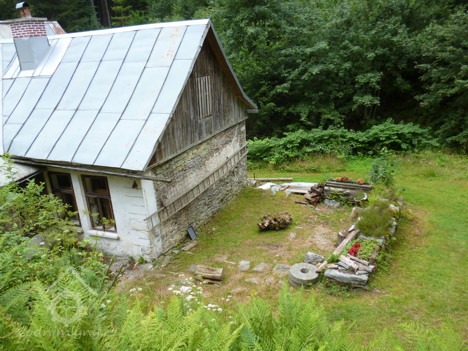 Roubená obytná budova a zděná mlýnice jsou postaveny do tvaru písmene L.