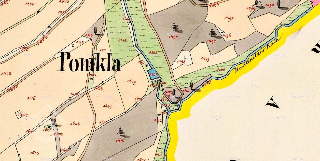 r. 1877 - prokopán náhon do malého rybníčku nad mlýnem i z Jestřabského potoka