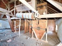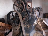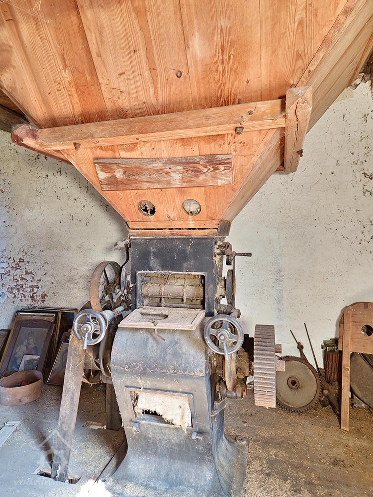 Válcová mlecí stolice výrobce J. Hübner a K. Opitz - Pardubice z roku 1898. Válce vedle sebe v litinové skříni.