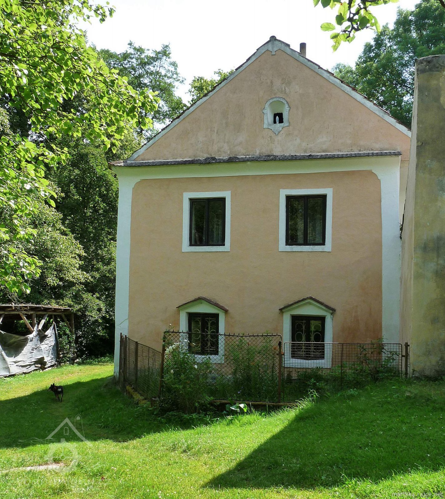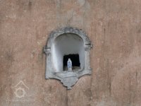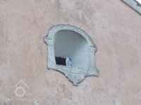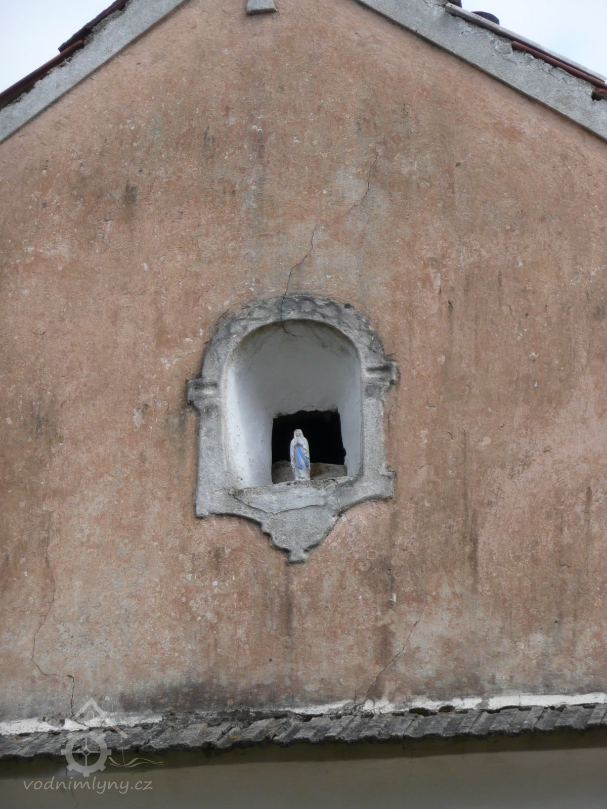 V jemně asymetricky umístěném štítě je malý výklenek pro ikonu.