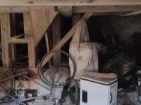 Mřížovými bočními okénky je také vidět do prostoru suterénu, kde jsou vidět zachovalé transmise v podkolí a hlavy kapsových výtahů.