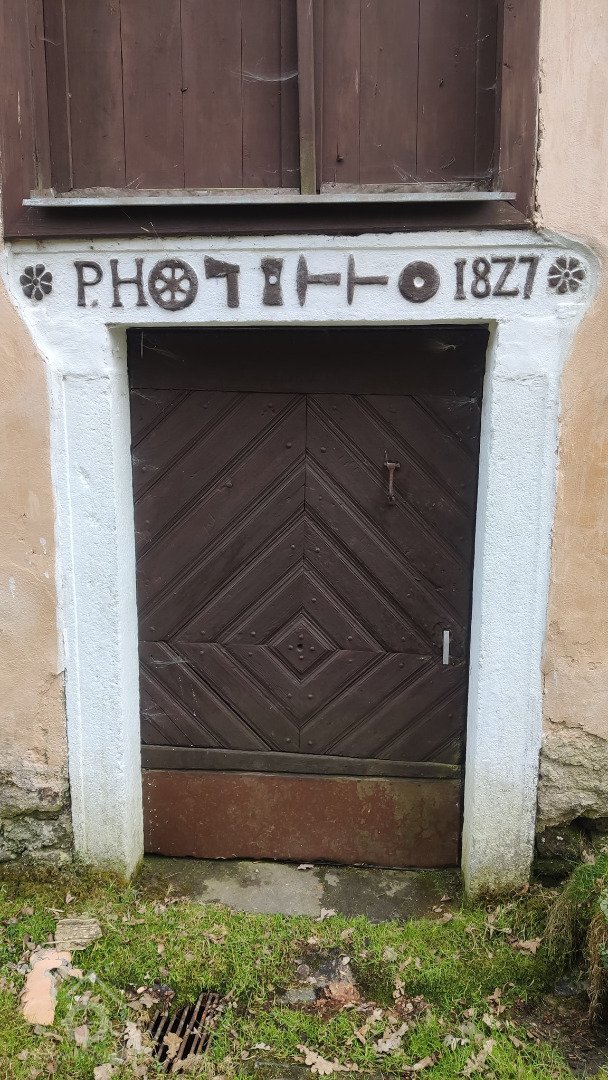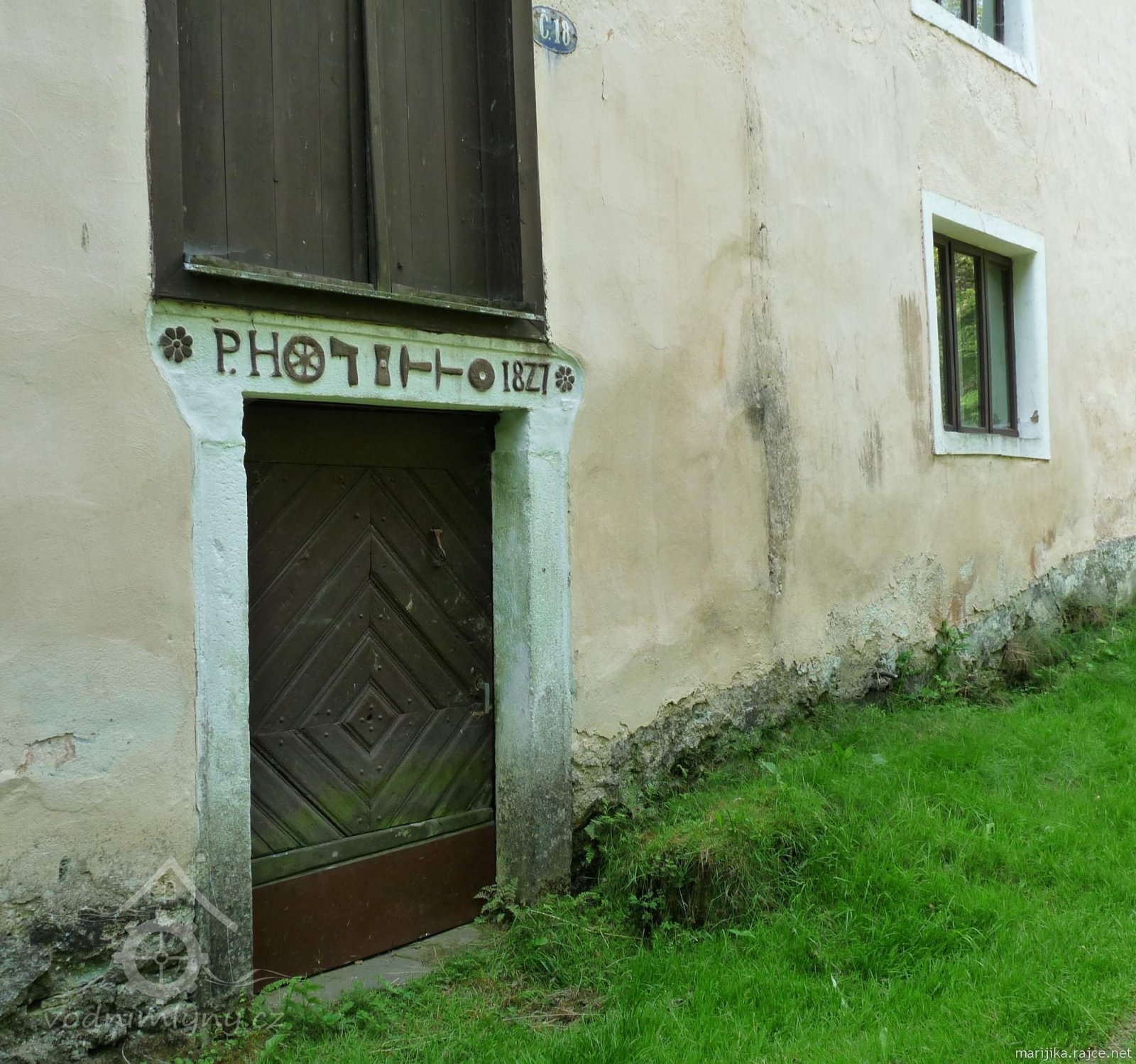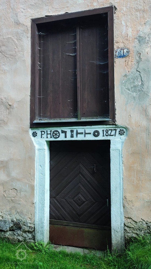 Na kamenném ostění bočních dveří do suterénu najdeme nejen vročení 1827, ale i pěkný reliéf s atributy mlynářství - vodním kolem, sekyrou, kypřicí, špičákem, oškrtem a mlecím kamenem (po stranách rostlinné motivy). Vpravo od vyskladňovacího otvoru je také původní cedulka s číslem popisným 18. Poměrně zachovalý je dřevěnou nástavbou krytý prostor pily. Vzadu za areálem je ještě stodola.