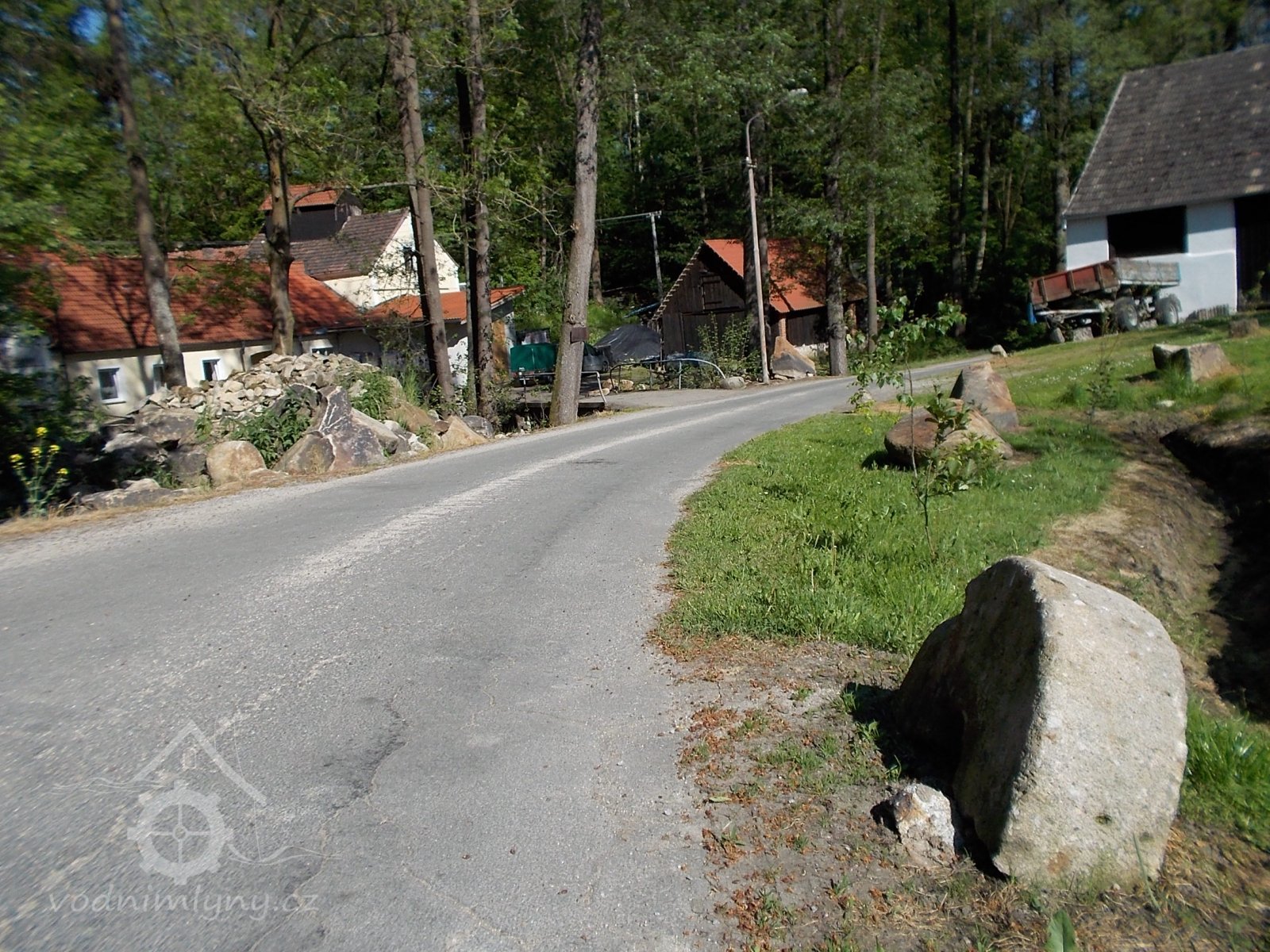 1,2km od centra Trhových Svinů, před Hanzlovým mlýnem