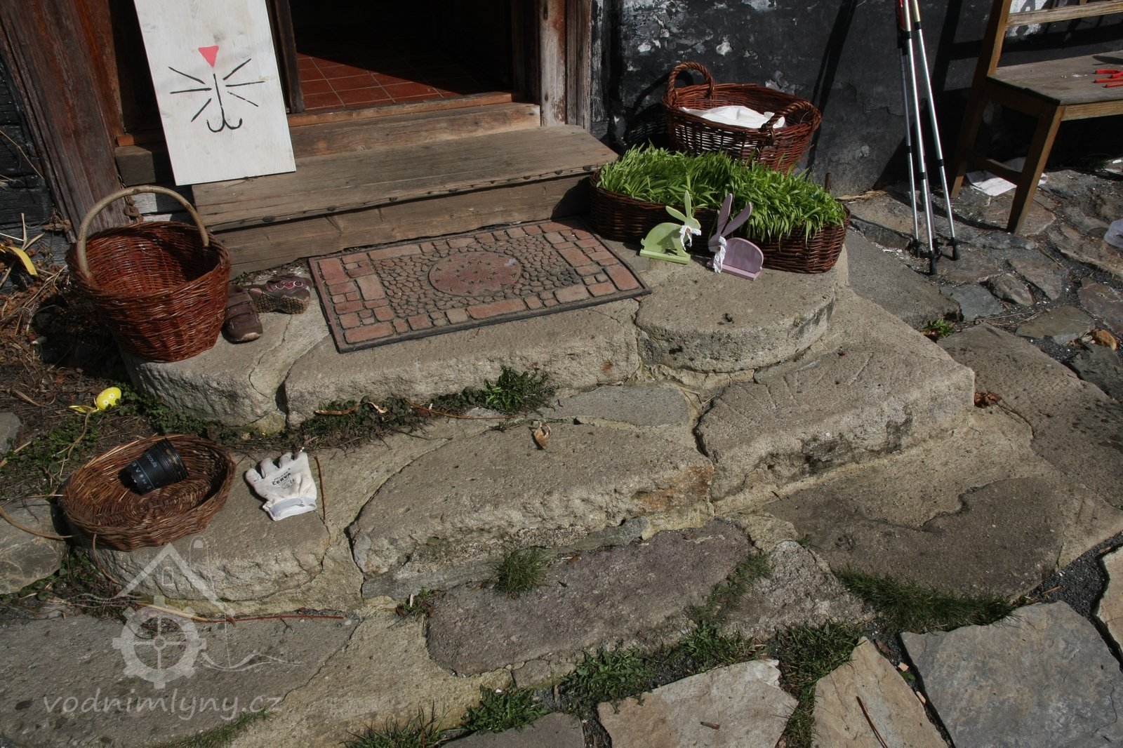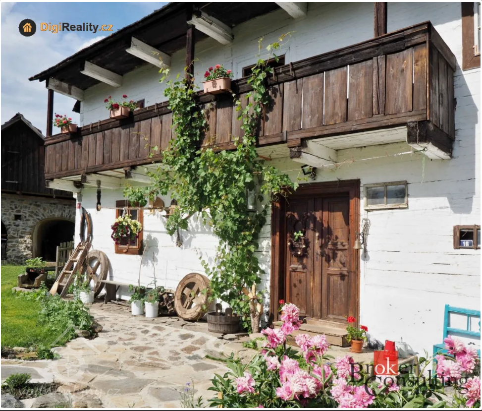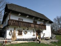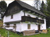 Volně stojící, do svahu bokem vestavěné patrové roubené bílené stavení s polovalbovou střechou, krytou šindelem. Průčelí pod lichoběžníkovým štítem ze svislých tmavých prken předěleno v patře úzkou šindelovou stříškou, jaká je i pod lomenicí. V 1. p. je 1 obdélné okno uprostřed, v přízemí 1 okno blíže k pravému rohu a 2 sdružená - vlevo u svahu. K levému boku srubu tu přiléhá dole roubená a v patře prkny obitá přístavba, jejíž střecha - pultová - navazuje na hlavní střechu. Obdobný přístavek i při zadním štítovém průčelí. Na boku v obou podlažích po 3 osách. 1. zleva jsou obdélná okna, střední jsou dveře, v přízemí nad 4 schůdky, obdélné, dvoukřídlé, výplňové, v patře obdélné na pavlač, jdoucí od levého nároží podél tříčtvrtní délky fronty. 3. osa je v přízemí malé okénko, v patře okno jako 1. osa.