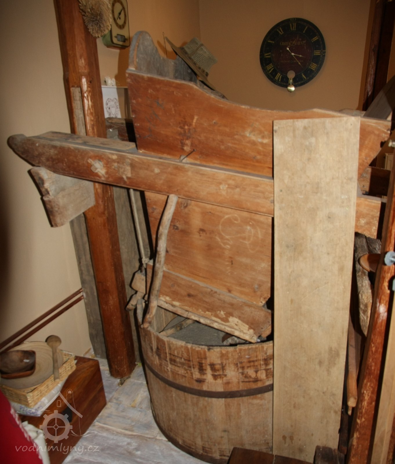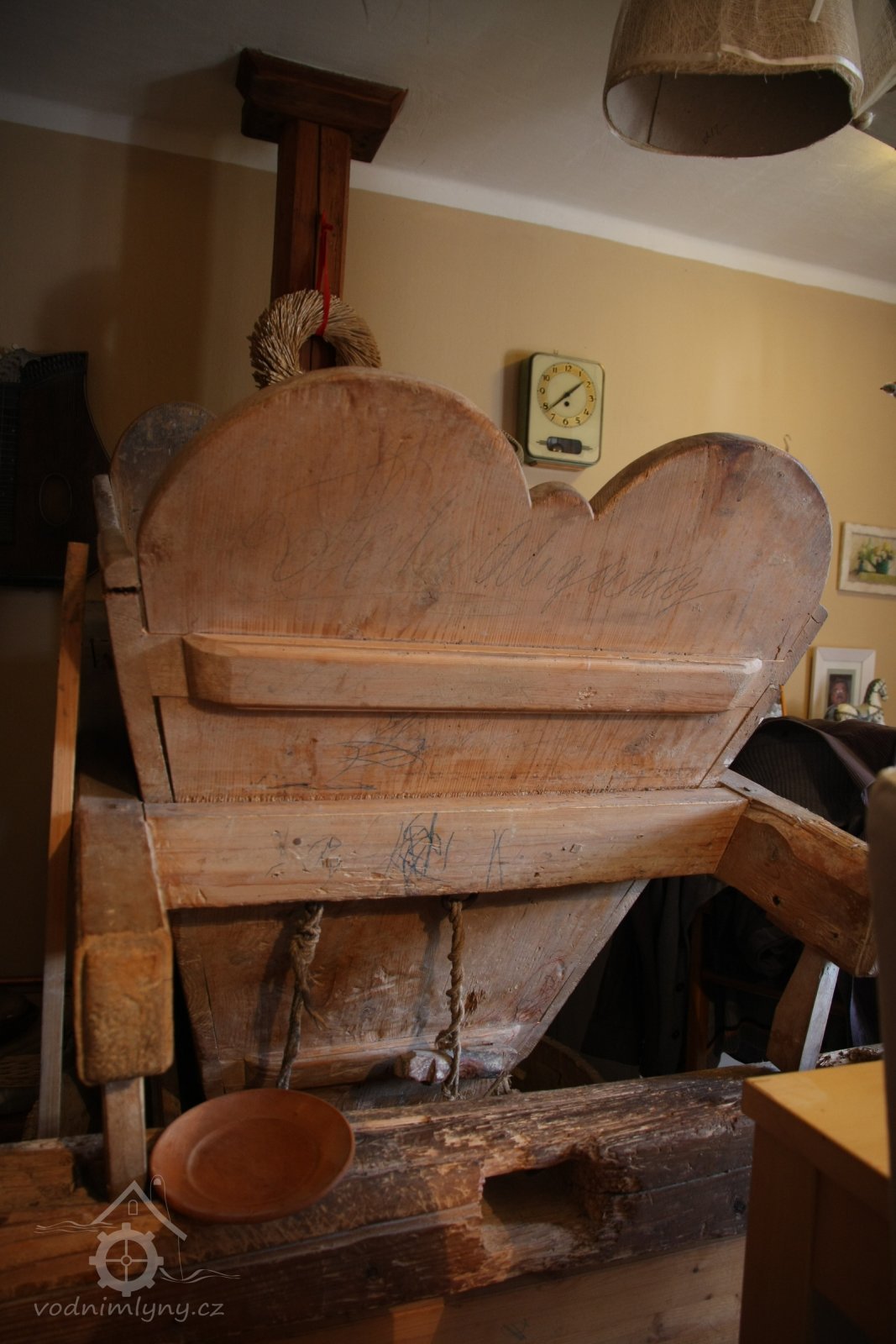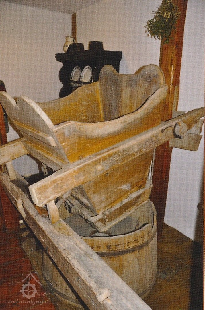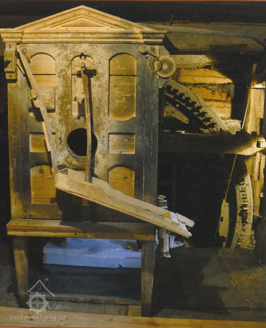 Zachované zařízení z 19. stol.: násypný koš v patře, v přízemí palečné kolo z r. 1888.
