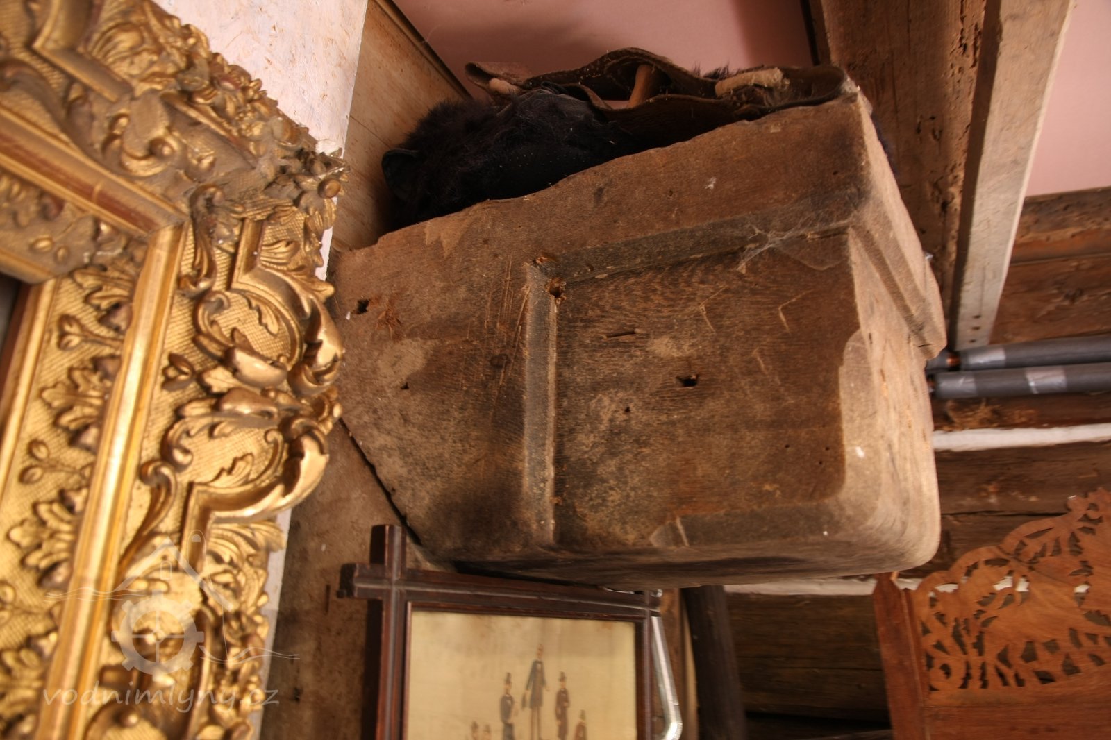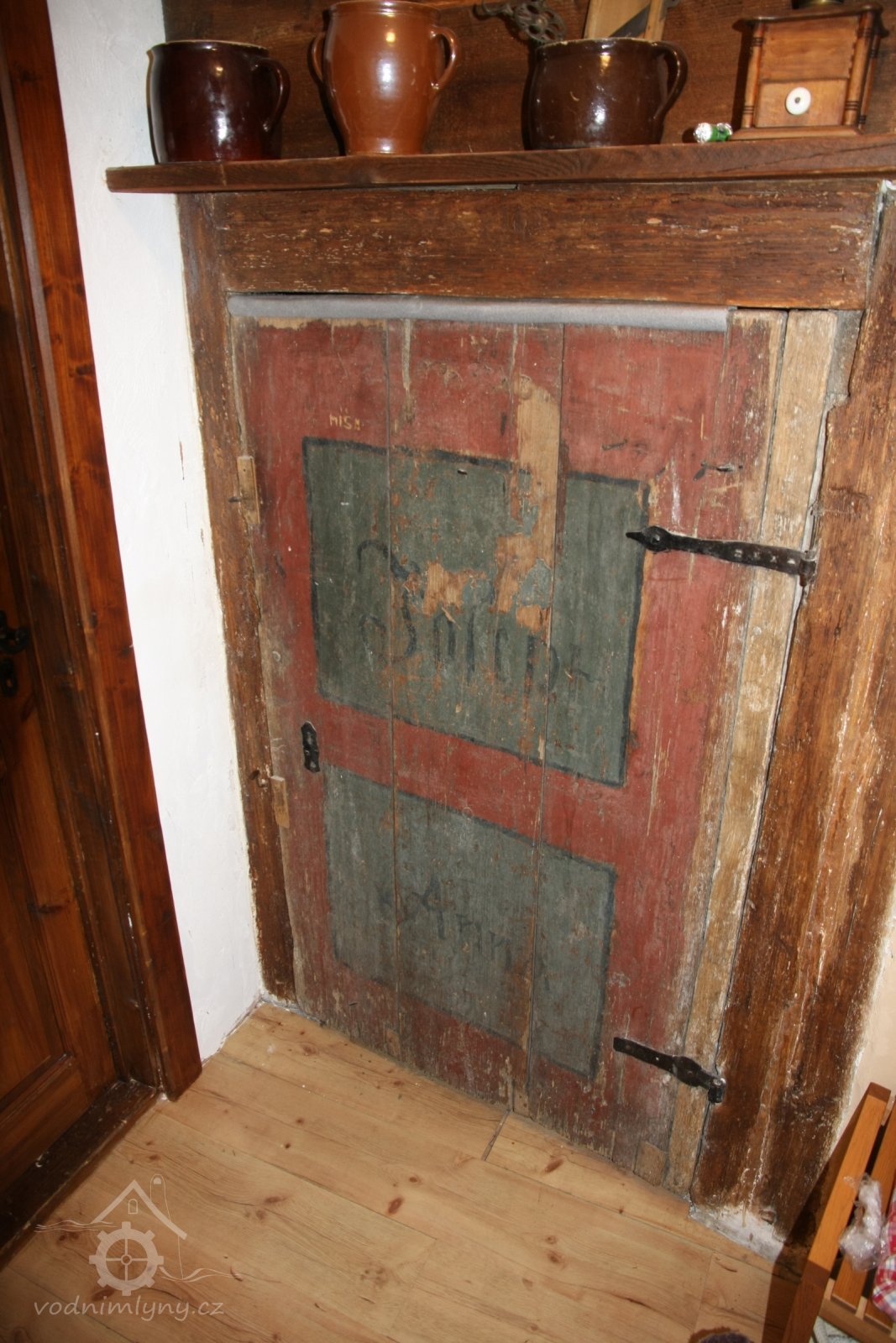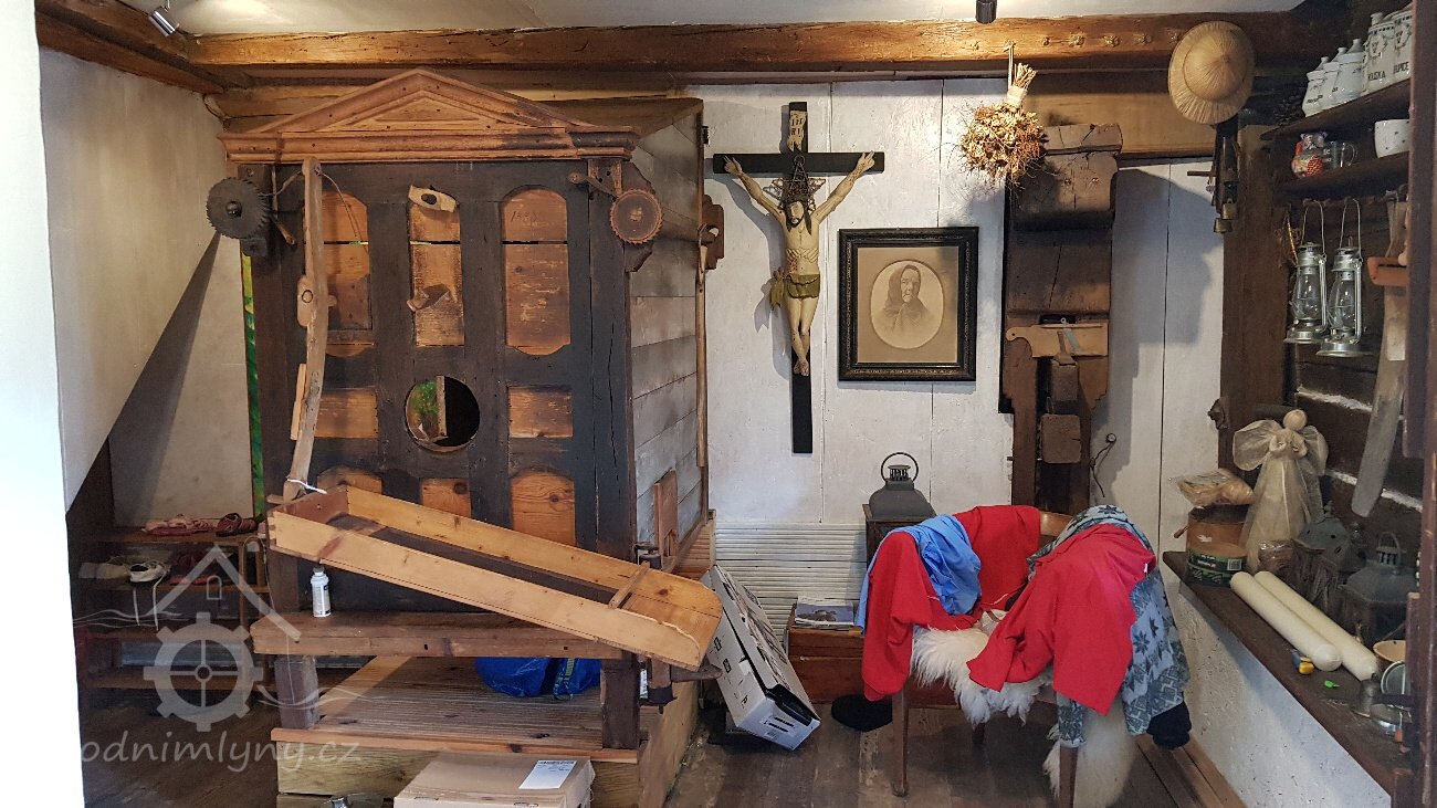 Zachované zařízení z 19. stol.: násypný koš v patře, v přízemí palečné kolo z r. 1888.