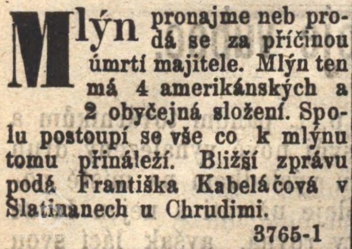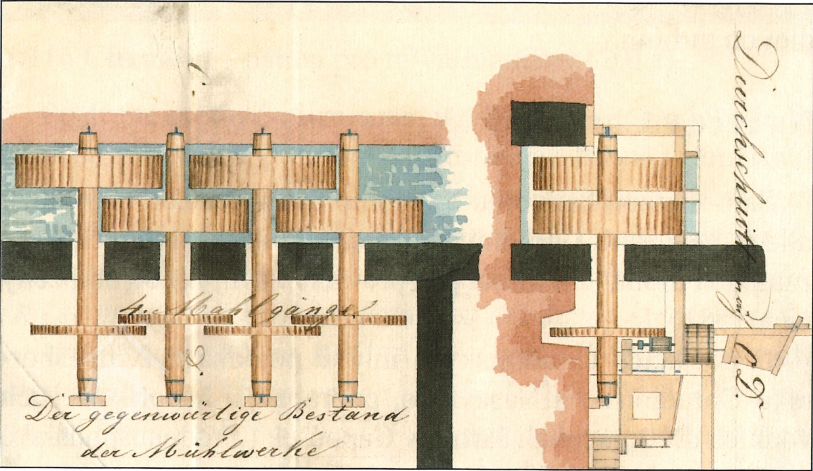 V soupisu mlýnů z roku 1704 uváděna dvě mlecí složení a dvě stoupy. (RUr)