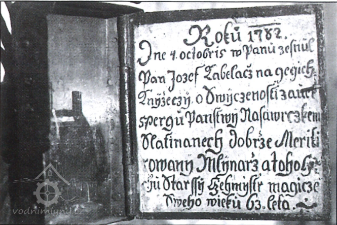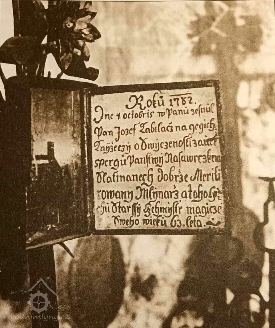 4.10.1782 zemřel mlynář Josef Kabeláč (63 let), cechmistr mlynářského cechu