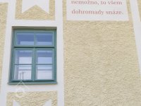 Na průčelí nápis: "Co jednomu nemožno, všem dohromady snadno"