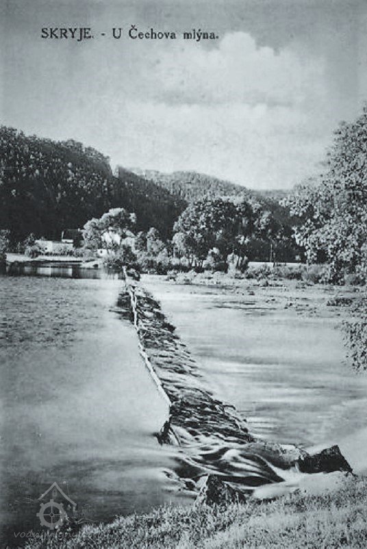 Čechovi výměrem z 8. srpna 1900 povoleno znovuzřízení jezu při mlýně narovnáním kamenů na zbytky jezu starého, a to pod podmínkou, že výše horní hrany jezu, která činila 3,775 m pod pevným bodem, bude dodržena. Zároveň bylo Václavu Čechovi povoleno postavit – opět za stanovených podmínek – u mlýna 50 m dlouhou a 1 m širokou lávku přes řeku pro vlastní potřebu. Jez však prozatím obnoven nebyl, neboť výnos c. k. místodržitelství v Praze ze dne 20. května 1909 Václavu Čechovi opět povolil jeho znovuzřízení. Mlynář Čech jez následně obnovil a po provedení kolaudace mu bylo výnosem z 11. října 1911 povoleno jeho používání.