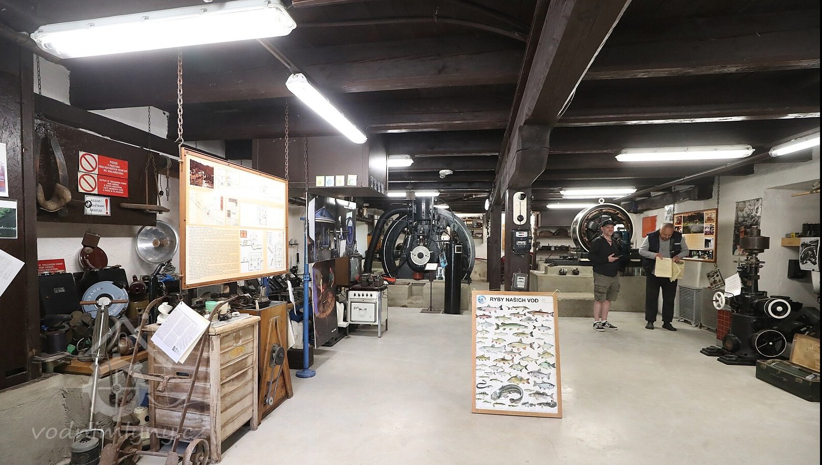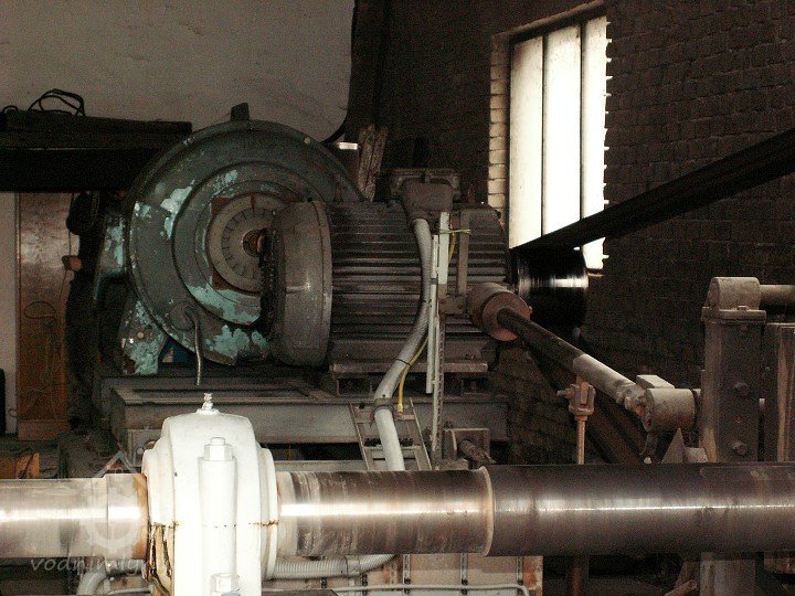 Strojovna vodní elektrárny se zachovaným technologickým vybavením.