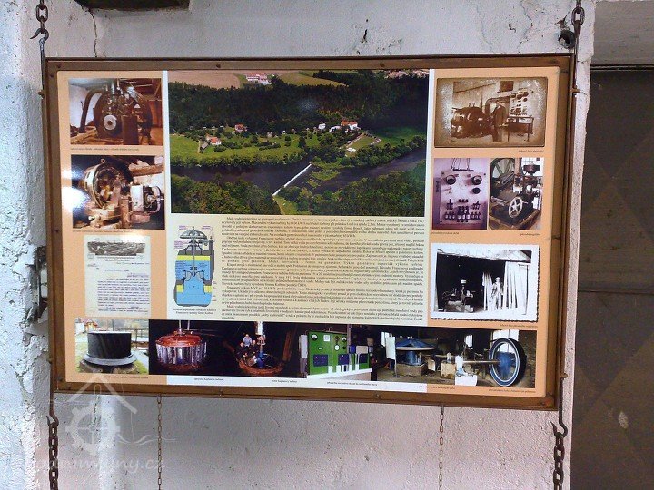 V roce 1916 namontována Francisova turbína s vertikální hřídelí. Od r. 1932 zvyšoval výkon MVE jednoválcový dvoudobý naftový motor značky Škoda a od přelomu 30. a 40. let rovněž druhá Francisova turbína. Jako náhradní zdroj (při malém stavu vody v řece nebo při odstávce turbíny kvůli opravě) poháněl zmíněný motor synchronní generátor značky Siemens, v současnosti jeden z posledních exemplářů svého druhu na světě. Oba technické unikáty se po generální opravě staly součástí expozice, která byla v bývalé mlýnici slavnostně otevřena v květnu 2008.