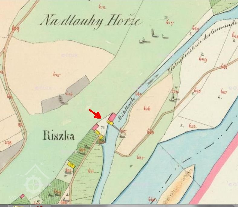 Na historických mapách je mlýn nazýván Riszka/Riška.