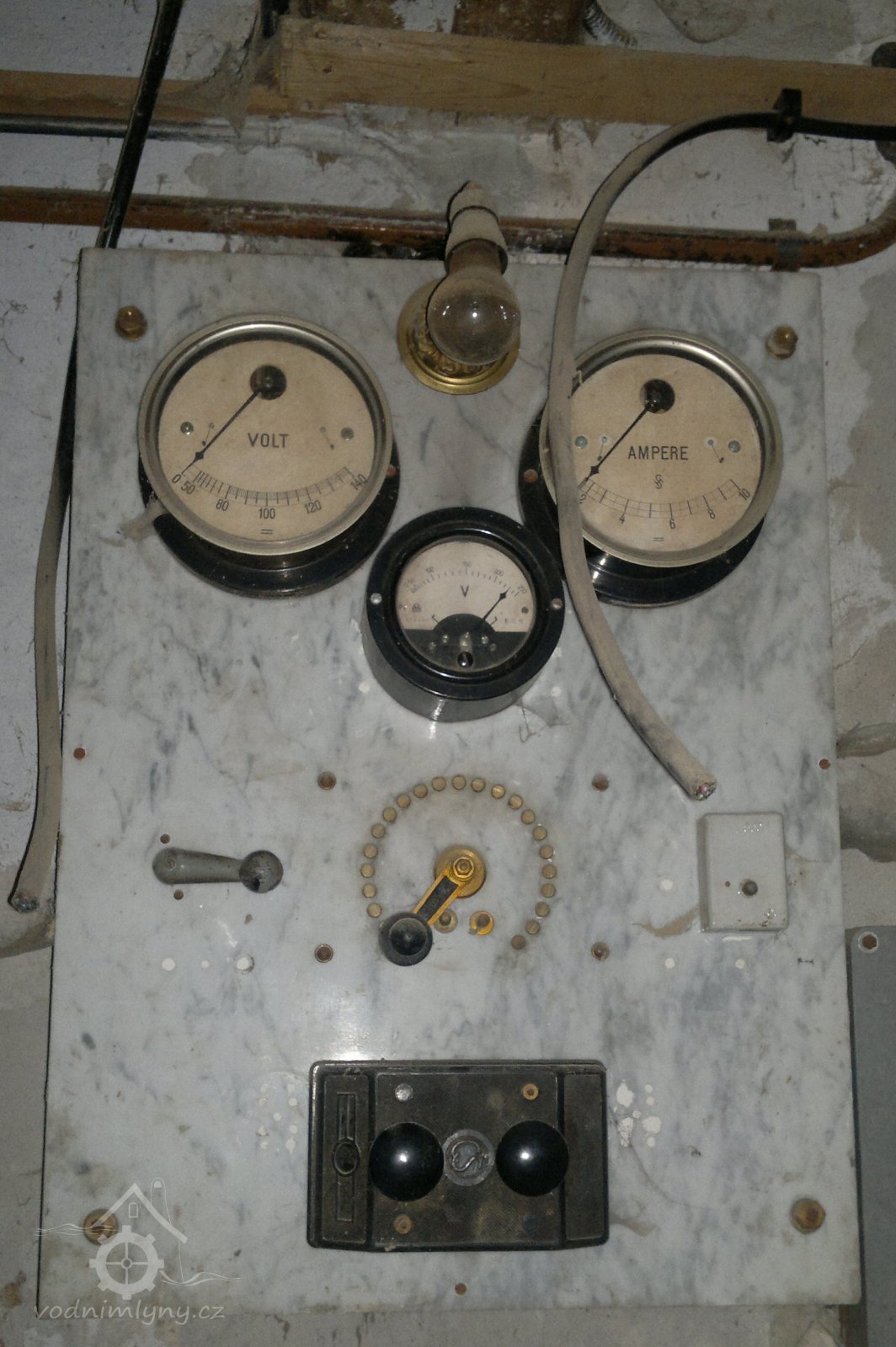 Elektrorozvodná deska-disponuje ampérmetrem a dvěma voltmetry. K regulaci napětí pro osvětlení sloužil pákový potenciometr, umístěný pod měřiči. Dále deska obsahuje hlavní vypínač a malou pojistkovou krabičku s krytem.
